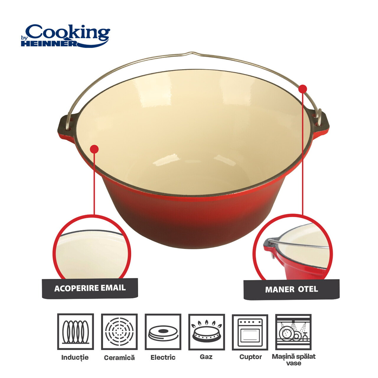 Ceaun Cooking by Heinner, 41x19.5 cm, 16 L, fonta emailata, rosu