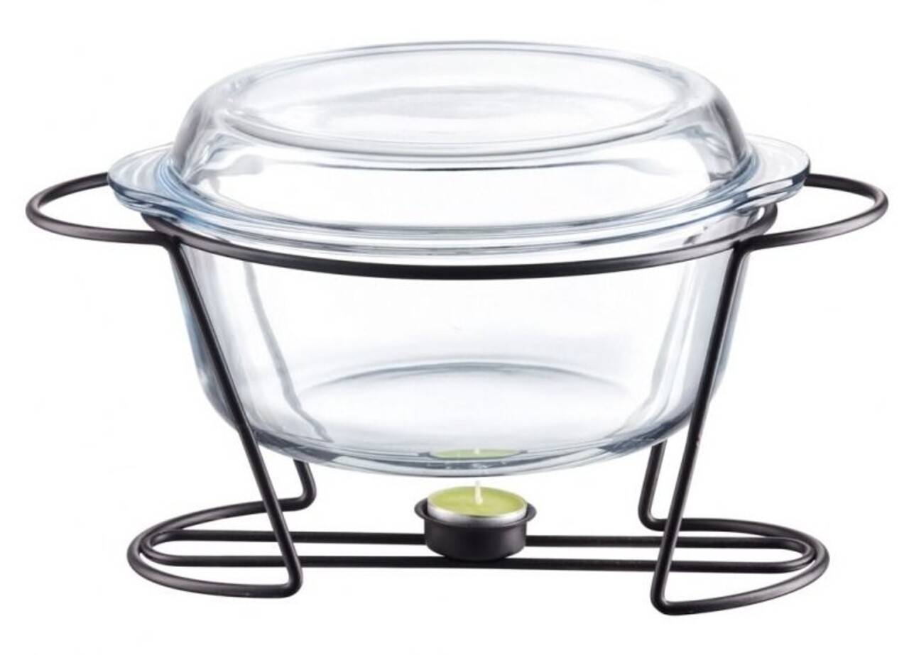 Chafing dish / Vas termorezistent cu incalzitor Saule, Ambition, 4 L, sticla, suport negru