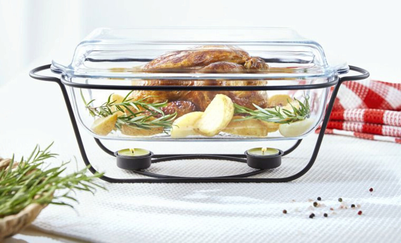 Tava termorezistenta cu capac pentru cuptor si servire bufet, chafing dish cu lumanare, Ambition Saule. Vasele termorezistente din linia Saule a brandului Ambition va permit nu numai sa pregatiti un fel de mancare delicios, ci sa si mentineti temperatura mancarii care este servita pentru o perioada lunga de timp. Acest articol este perfect pentru cinele de sarbatori, banchete sau alte ocazii speciale. Chafing-dish este fabricat din sticla de cea mai inalta calitate si in plus are un aspect elegant atemporal si un design simplu. Vasele din sticla se potrivesc perfect cu orice fel de vesela si orcarui decor al mesei. In plus acestea sunt usor de pastrat curate si igienice. Vasele (fara cadru) pot fi folosite la temperaturi cuprinse intre -40°C si +300°C, motiv pentru care sunt ideale pentru pastrarea meselor in frigider si pentru utilizarea in cuptor. In plus vasul (fara cadru) este compatibil pentru spalarea in masina de spalat vase.