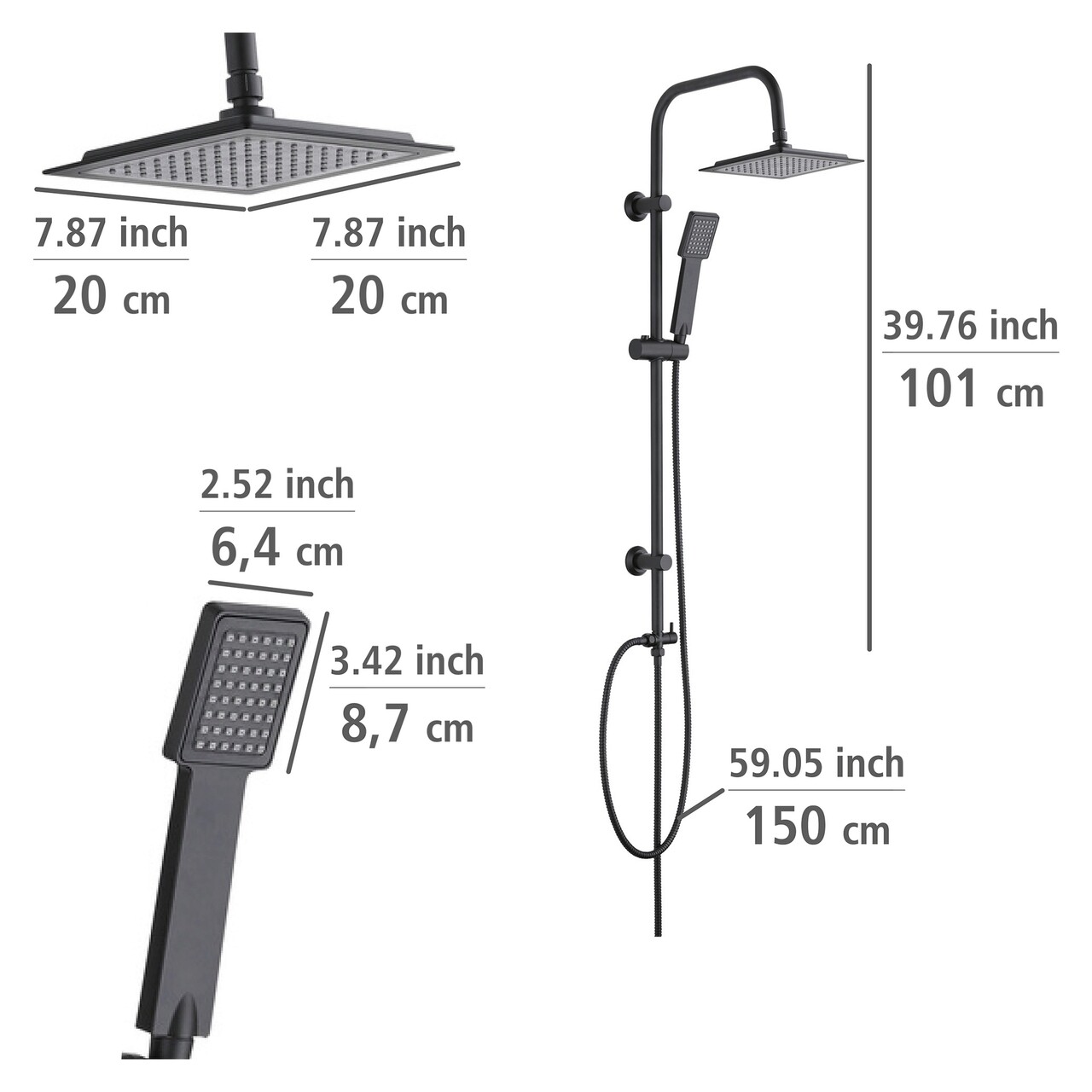 Coloana dus, Wenko, Cuadro, Ø 2.2 x 101 cm, inox, negru mat