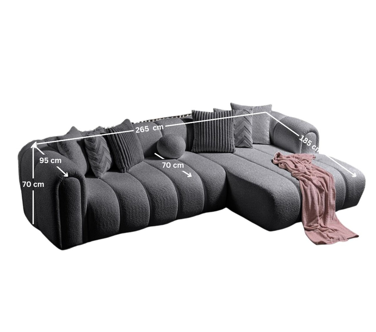 Latime: 265 x 185 cm Inaltime: 70 cm Adancime: 95 cm
