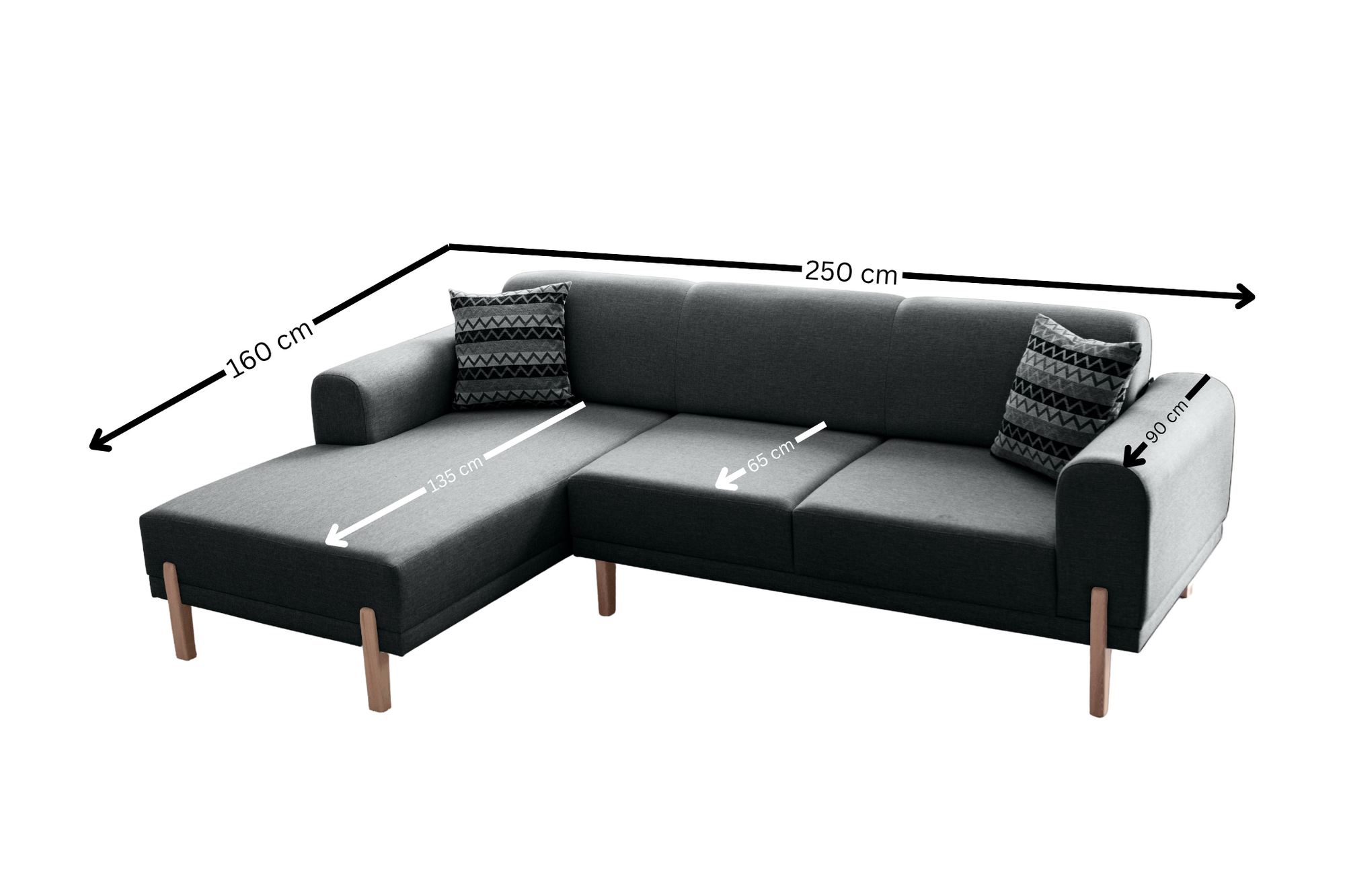Latime: 250 x 160 cm Inaltime: 80 cm Adancime: 135 cm