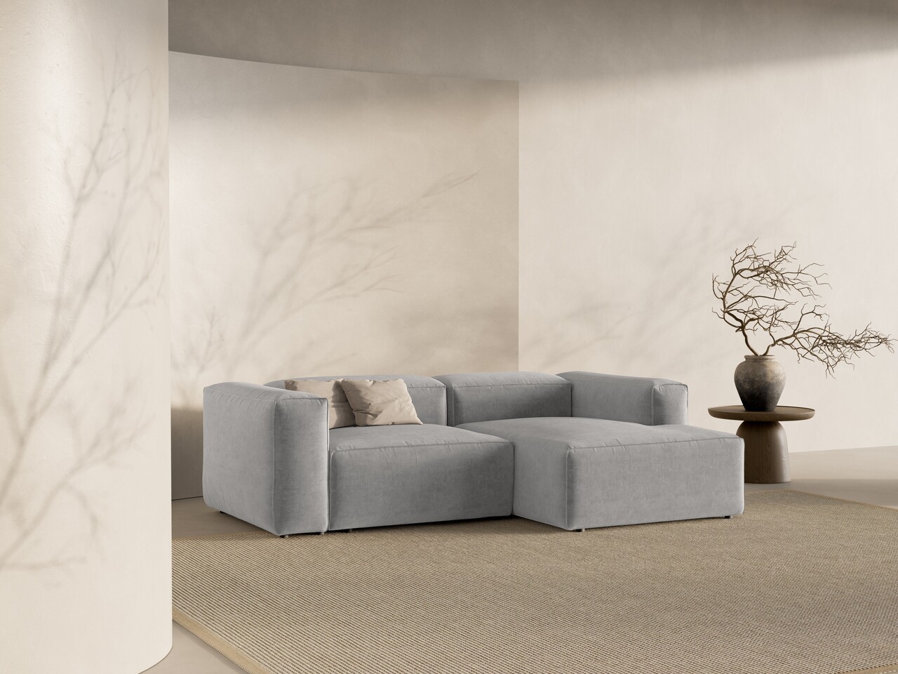 Coltar dreapta 2 locuri, Bergamo, Cosmopolitan Design, 244x152x70 cm, tesatura structurata, gri deschis