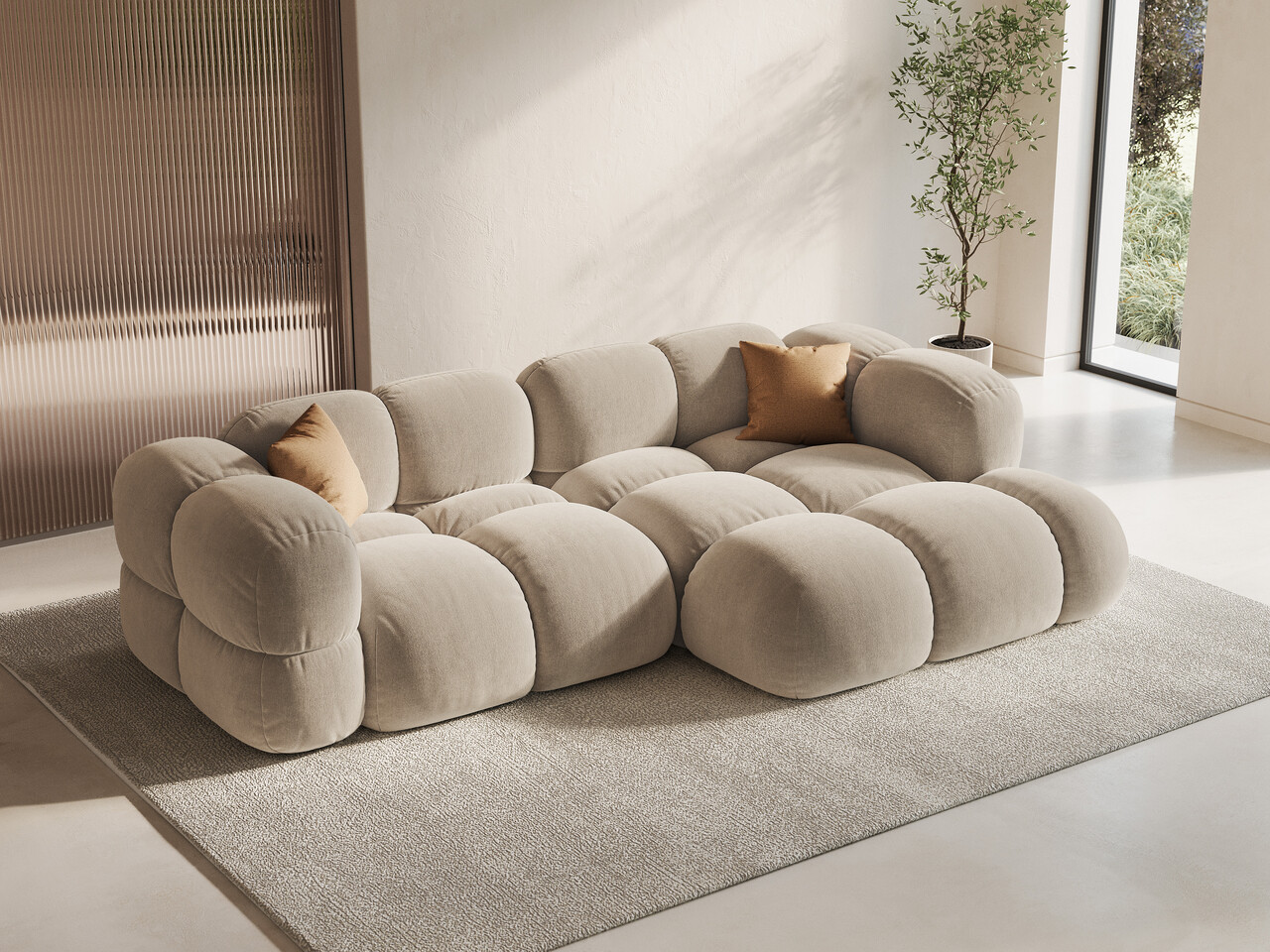 Coltar dreapta 3 locuri, Loretto, Cosmopolitan Design, 250x147x68 cm, catifea, bej deschis