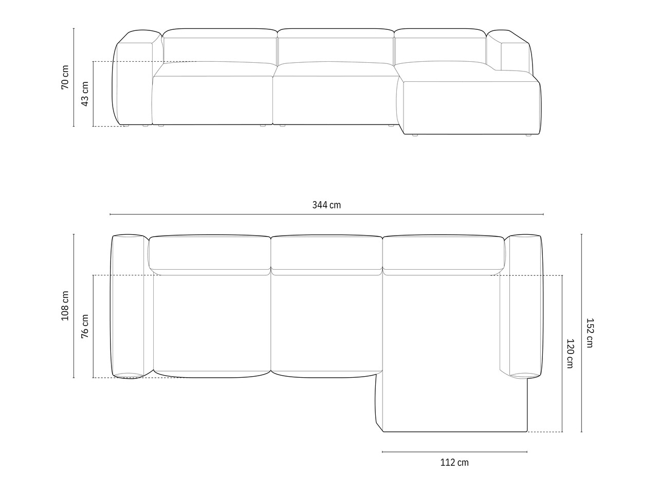 Coltar dreapta 4 locuri, Bergamo, Cosmopolitan Design, 344x152x70 cm, tesatura structurata, gri deschis