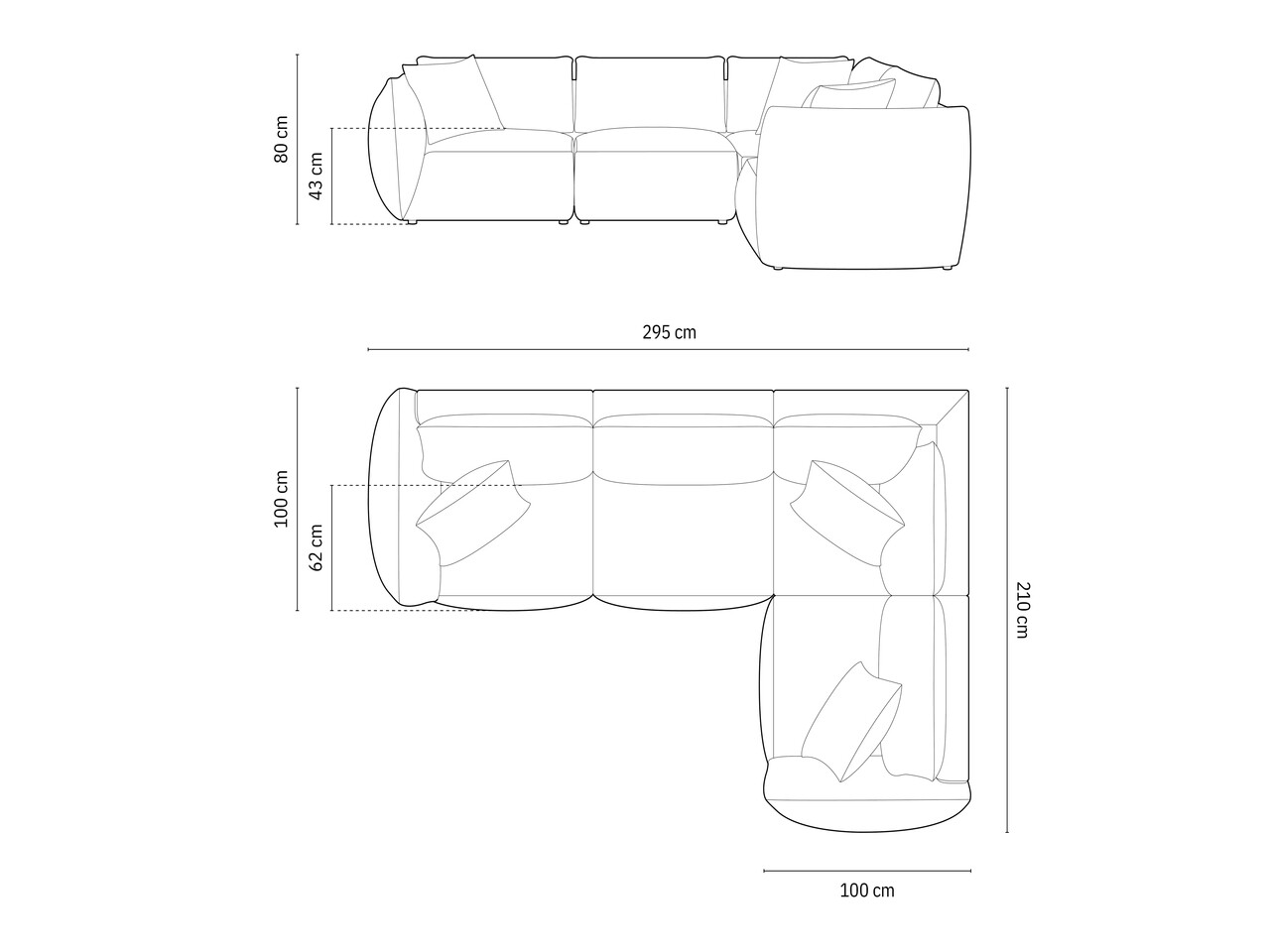 Coltar dreapta 4 locuri, Chris-184, Micadoni Home, 295x210x80 cm, catifea, teracota