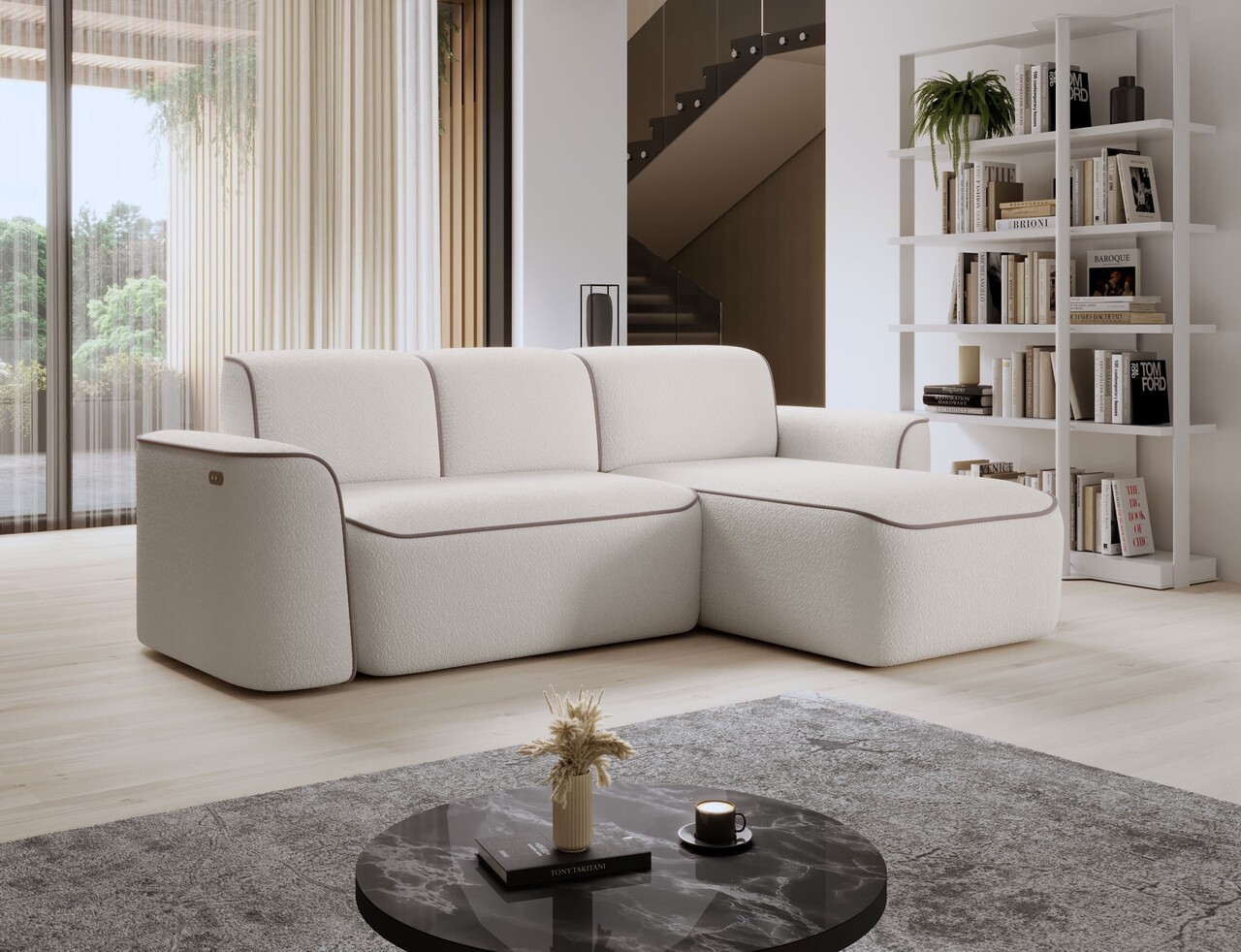 Coltar dreapta 4 locuri ELTAP, Ume, 287x190x88 cm, lemn/poliester, alb/bej