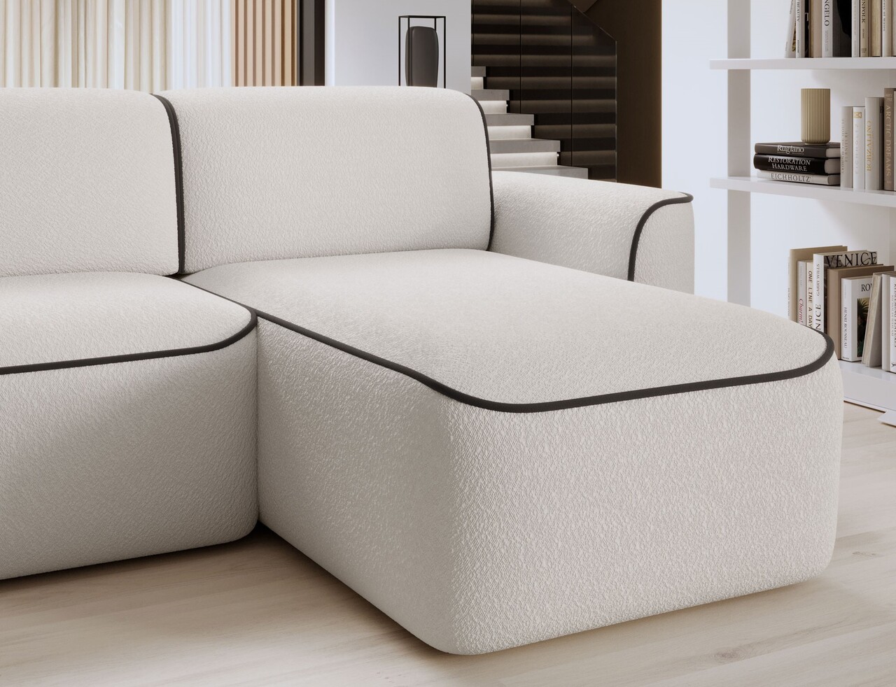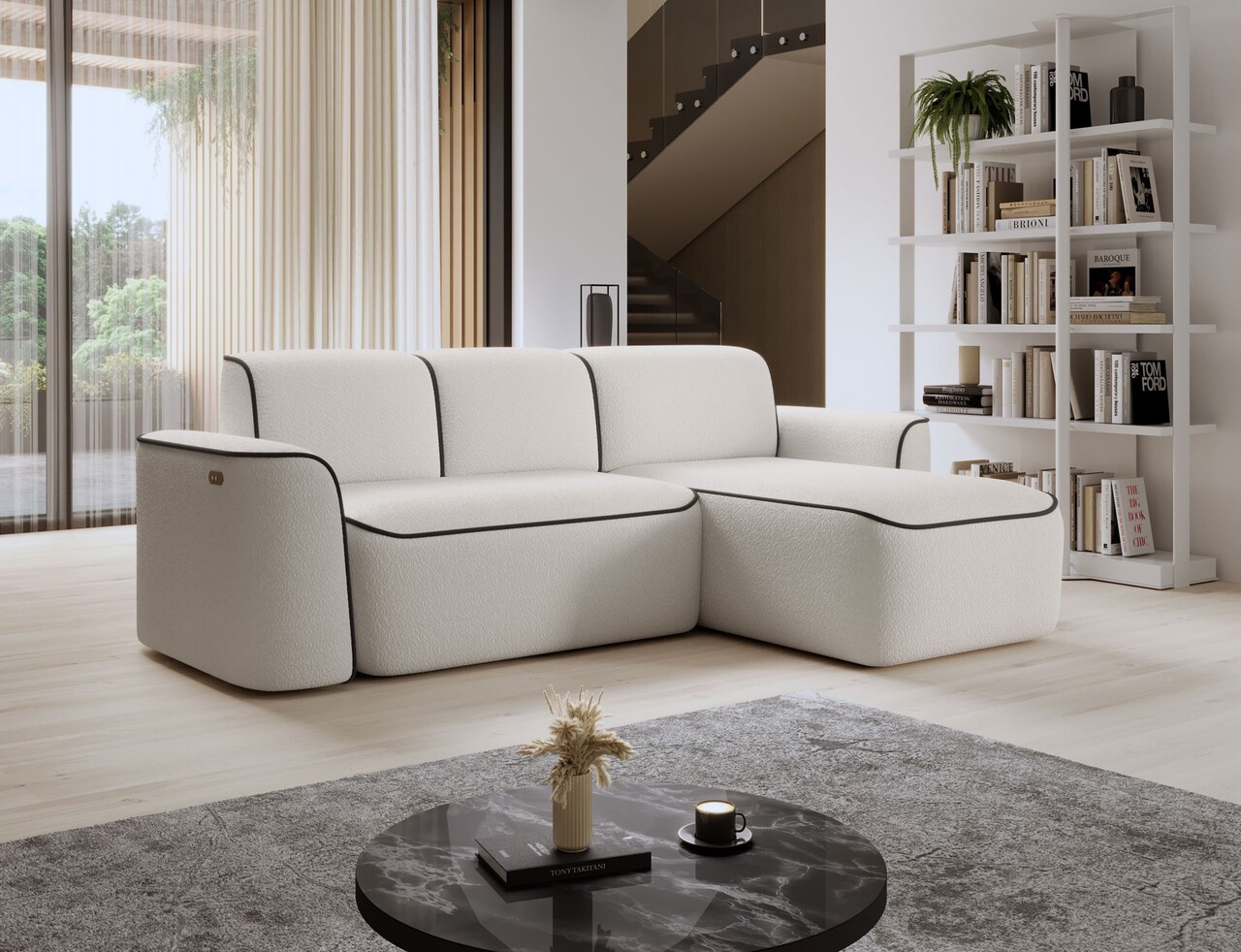 Coltar dreapta 4 locuri ELTAP, Ume, 287x190x88 cm, lemn/poliester, alb/maro inchis