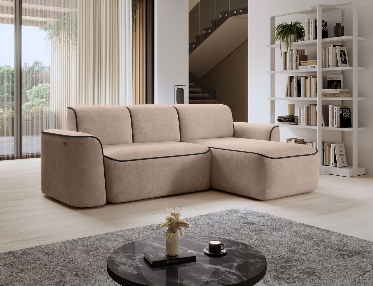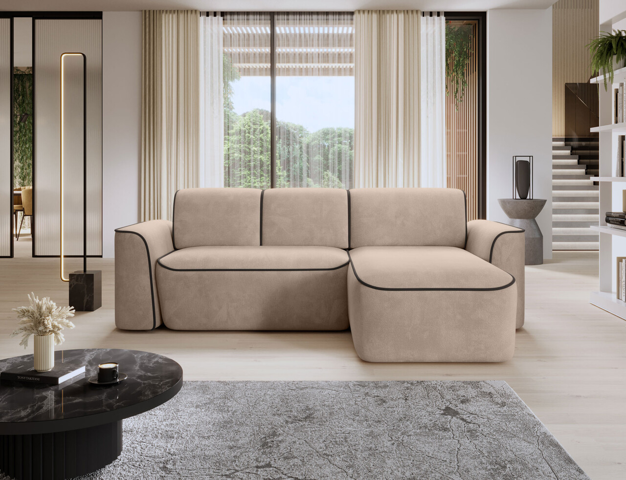 Coltar dreapta 4 locuri ELTAP, Ume, 287x190x88 cm, lemn/poliester, bej inchis/negru