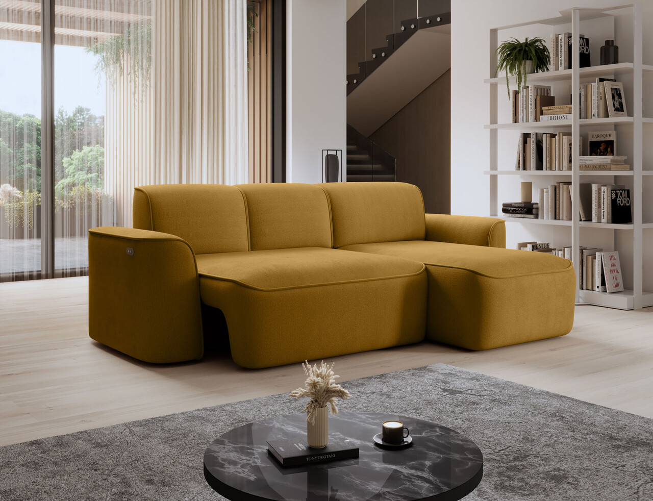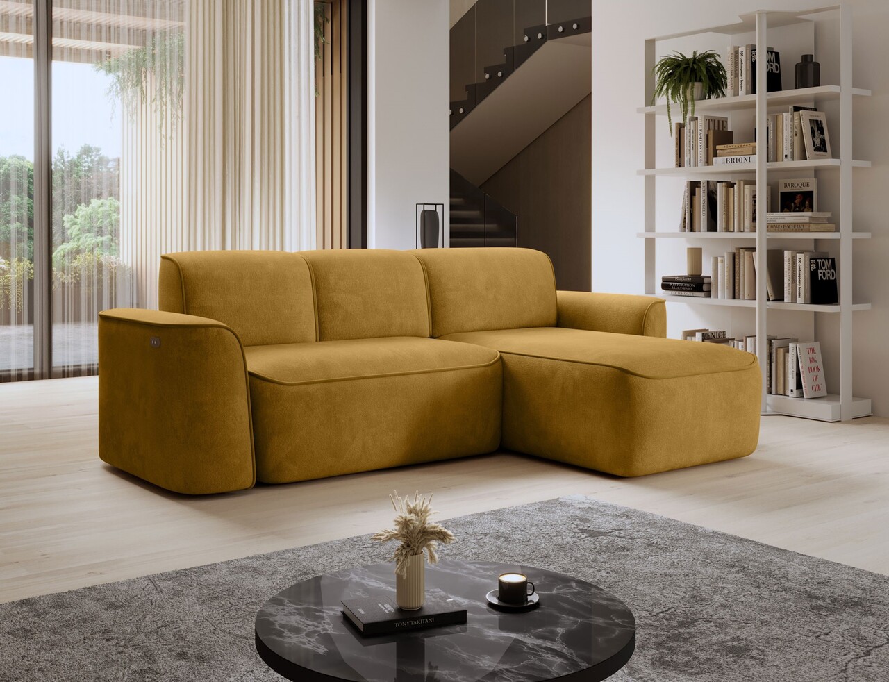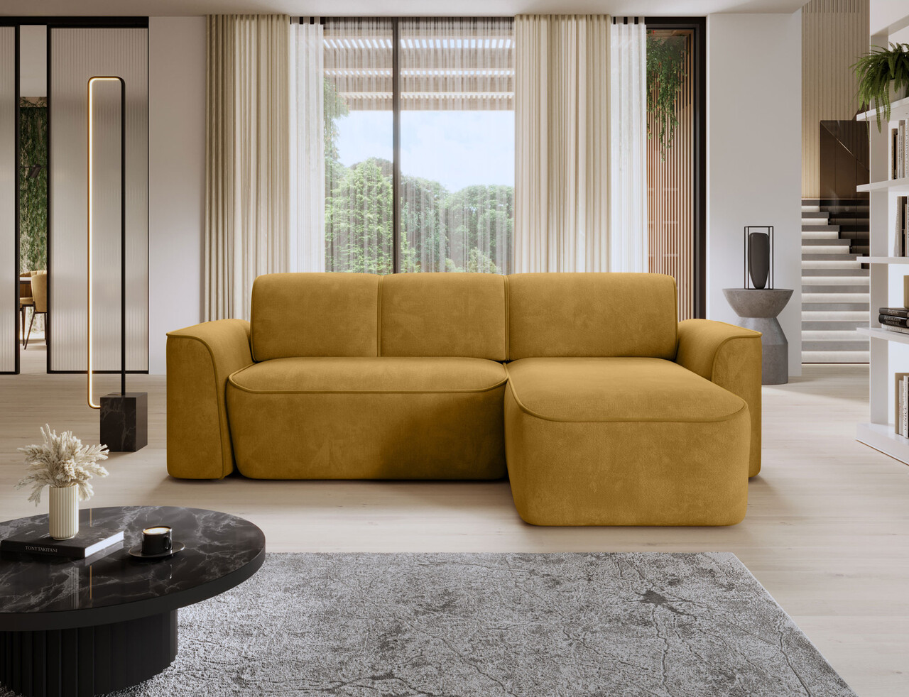 Coltar dreapta 4 locuri ELTAP, Ume, 287x190x88 cm, lemn/poliester, mustar