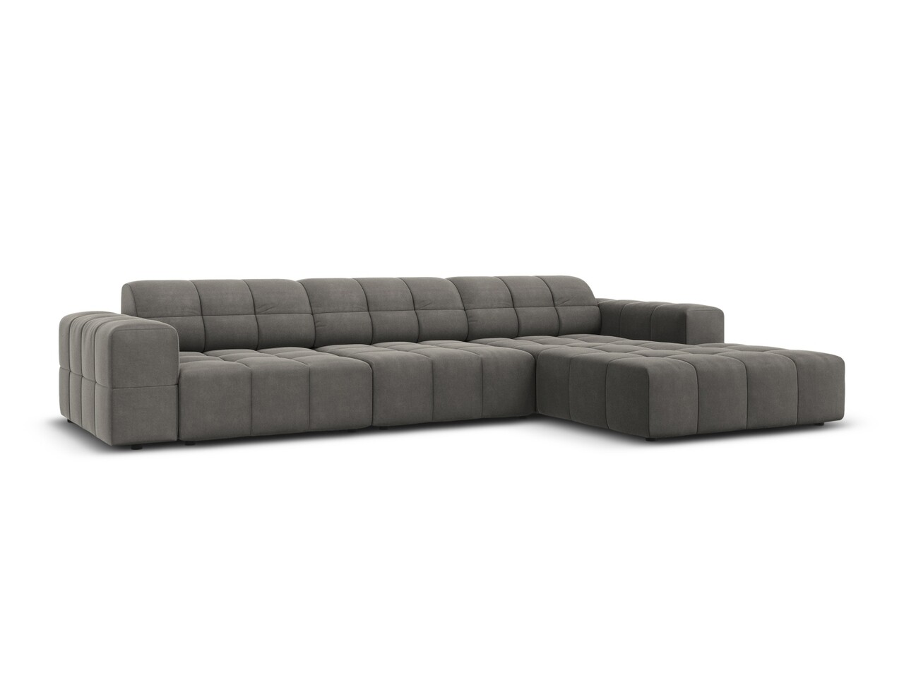 Coltar dreapta 4 locuri, Jennifer-51, Micadoni Home, 284x166x70 cm, catifea, gri deschis