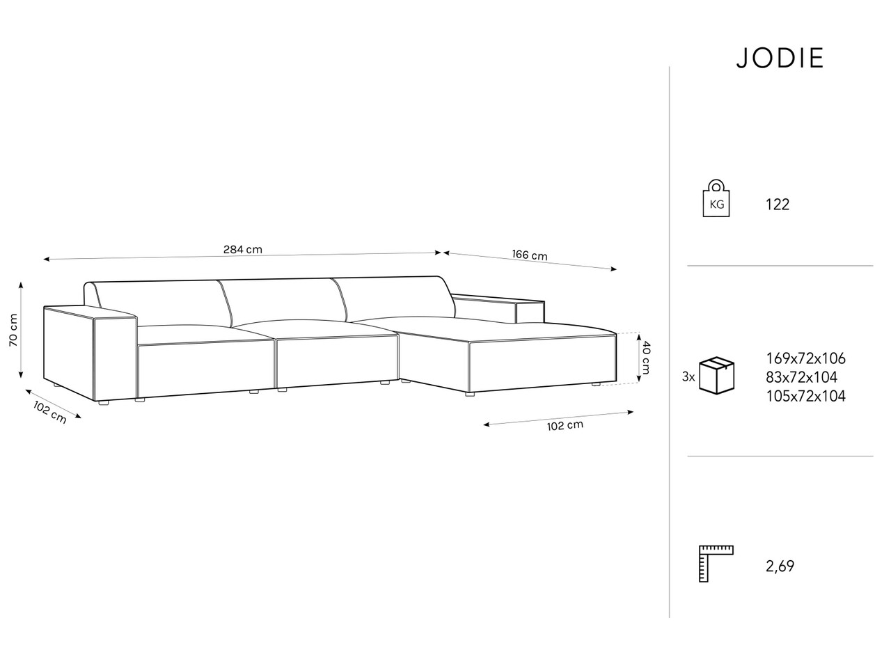 Coltar dreapta 4 locuri, Jodie, Micadoni Home, BL, 284x166x70 cm, poliester, negru