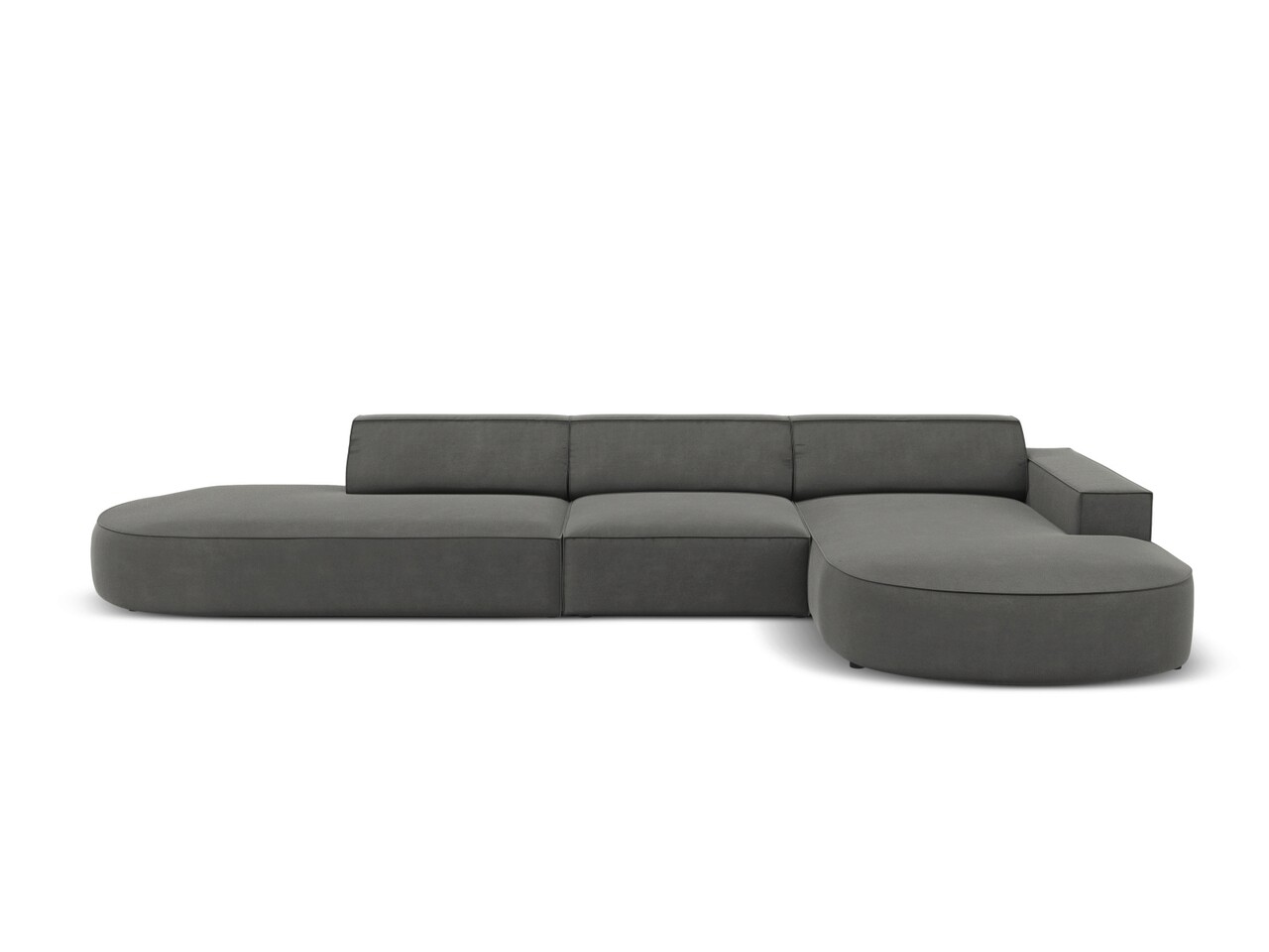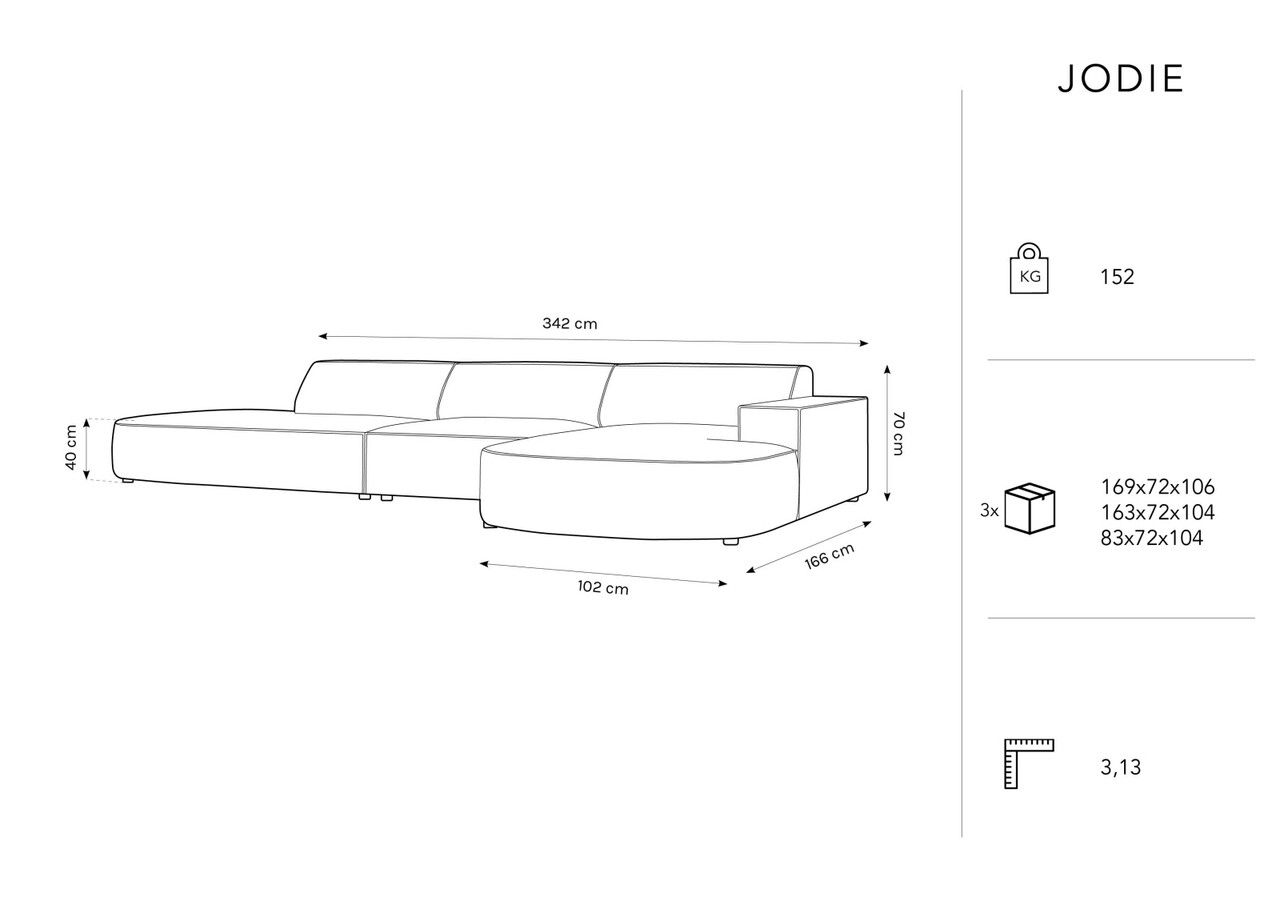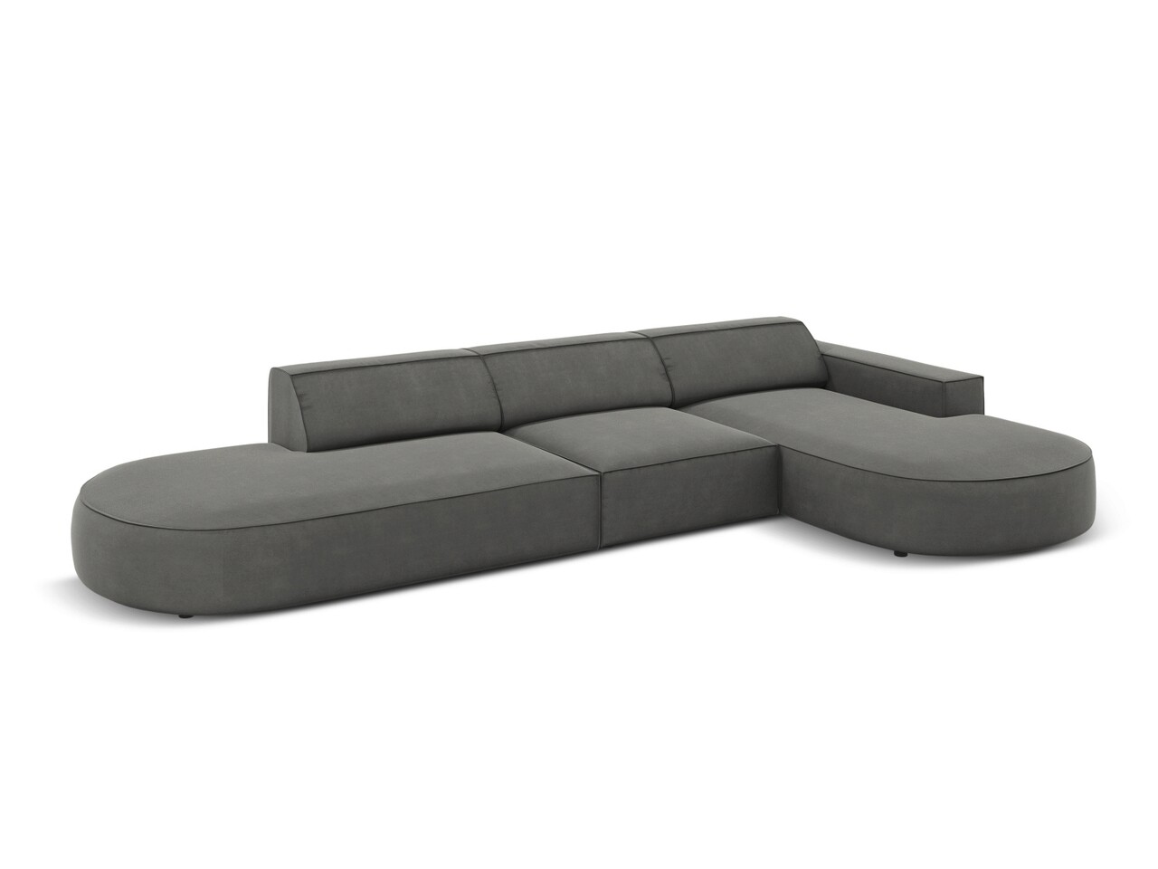 Coltar dreapta 4 locuri, Jodie, Micadoni Home, BL, forma rotunjita, 342x166x70 cm, catifea, gri deschis