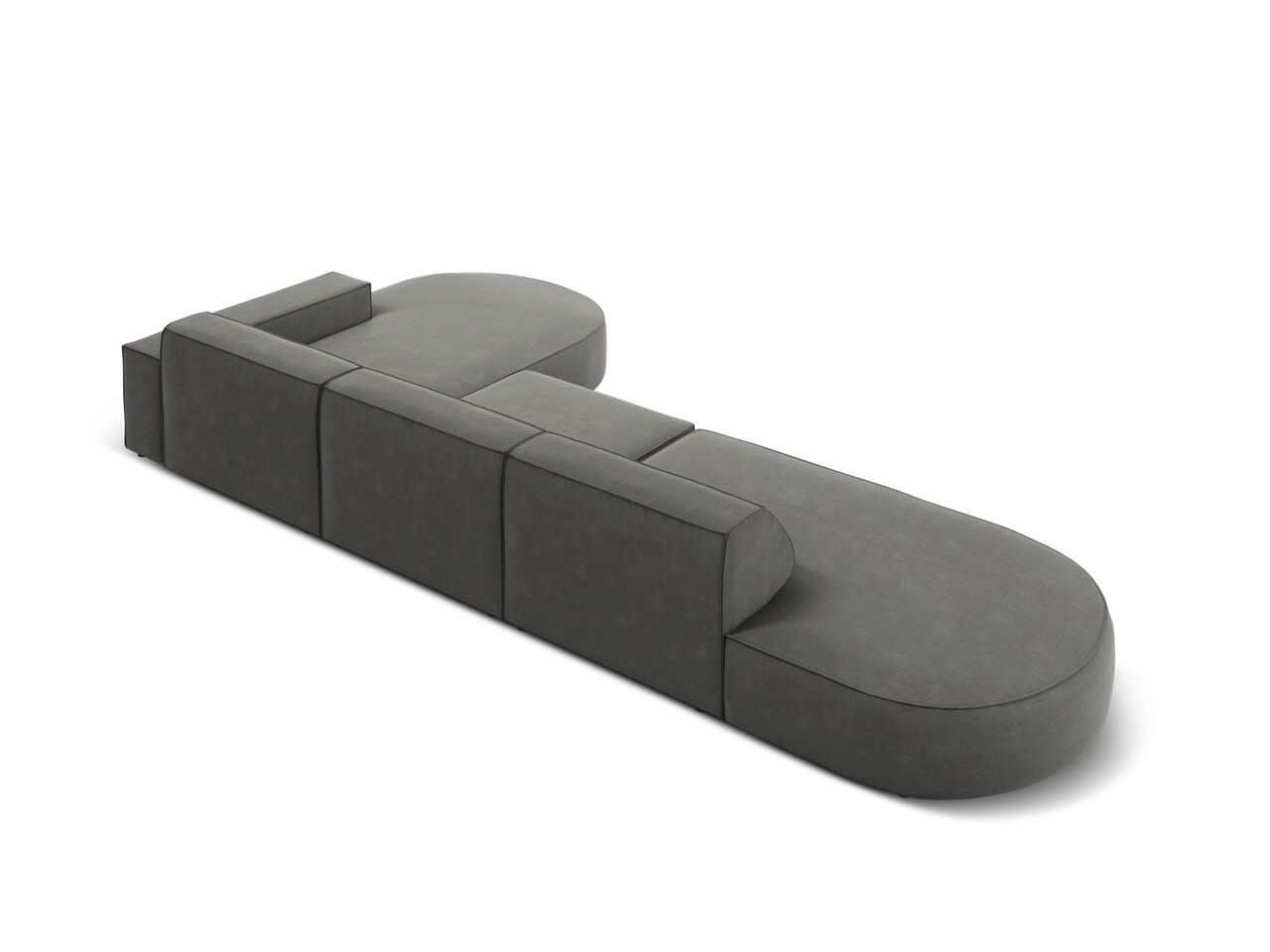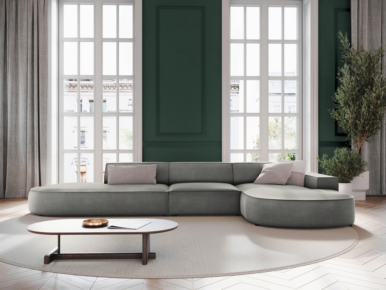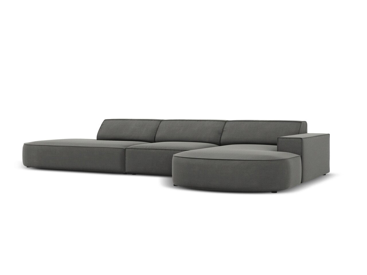 Coltar dreapta 4 locuri, Jodie, Micadoni Home, BL, forma rotunjita, 342x166x70 cm, catifea, gri deschis