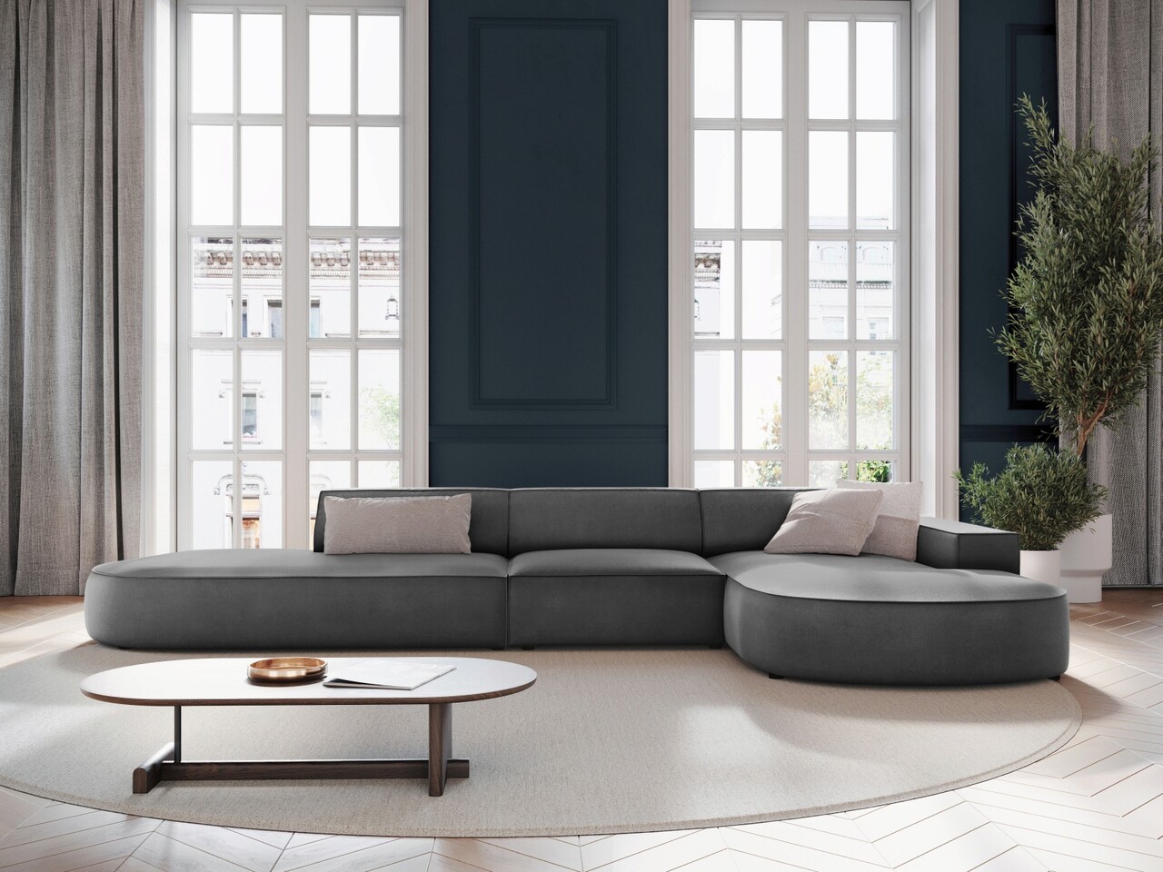 Coltar dreapta 4 locuri, Jodie, Micadoni Home, BL, forma rotunjita, 342x166x70 cm, catifea, gri