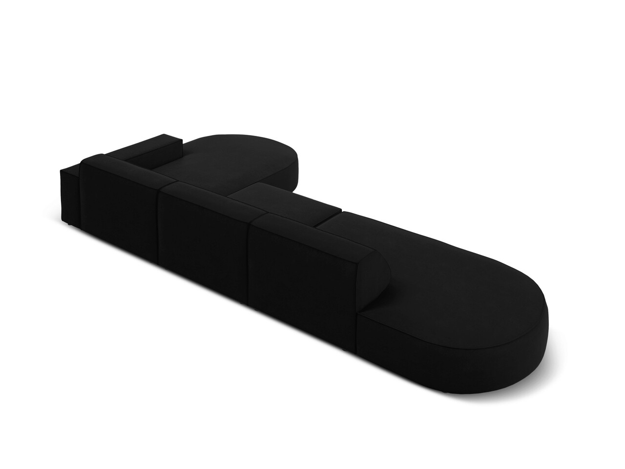 Coltar dreapta 4 locuri, Jodie, Micadoni Home, BL, forma rotunjita, 342x166x70 cm, catifea, negru