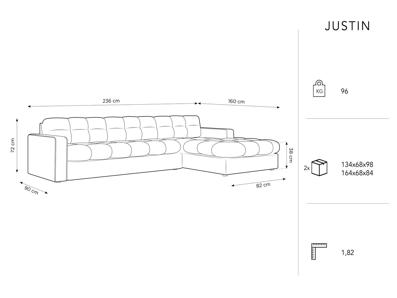 Coltar dreapta 4 locuri, Justin, Micadoni Home, BL, 236x160x72 cm, catifea, negru