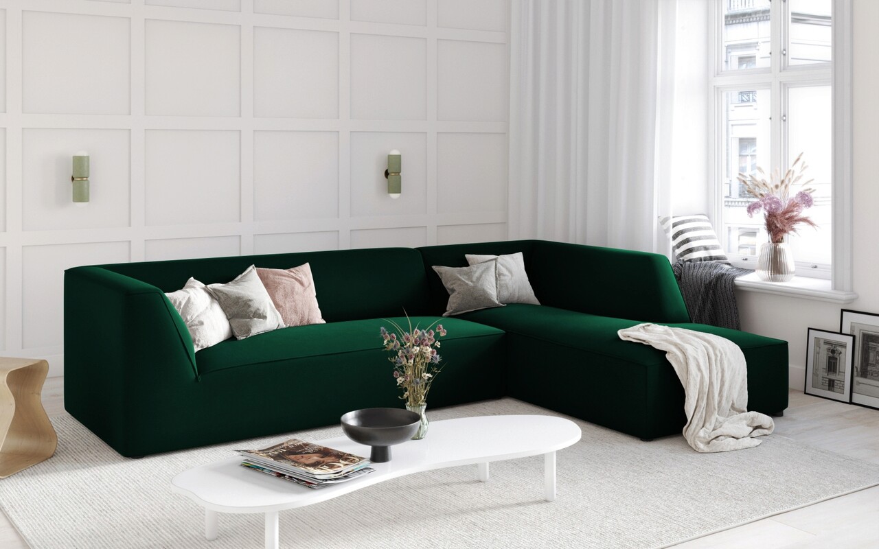 Coltar dreapta 4 locuri, Ruby, Micadoni Home, BL, 273x180x69 cm, catifea, verde bottle