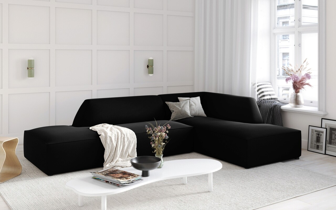Coltar dreapta 4 locuri, Ruby, Micadoni Home, BL, fara cotiera, 273x180x69 cm, catifea, negru