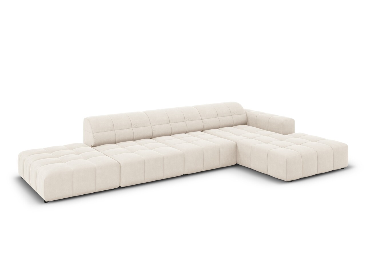 Coltar dreapta 5 locuri, Jennifer-51, Micadoni Home, 341x166x70 cm, catifea, bej deschis