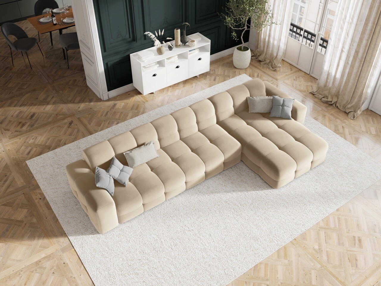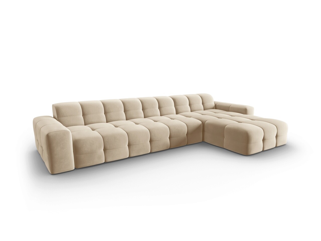 Coltar dreapta 5 locuri, Kendal, Micadoni Home, BL, 357x173x79 cm, catifea, bej deschis