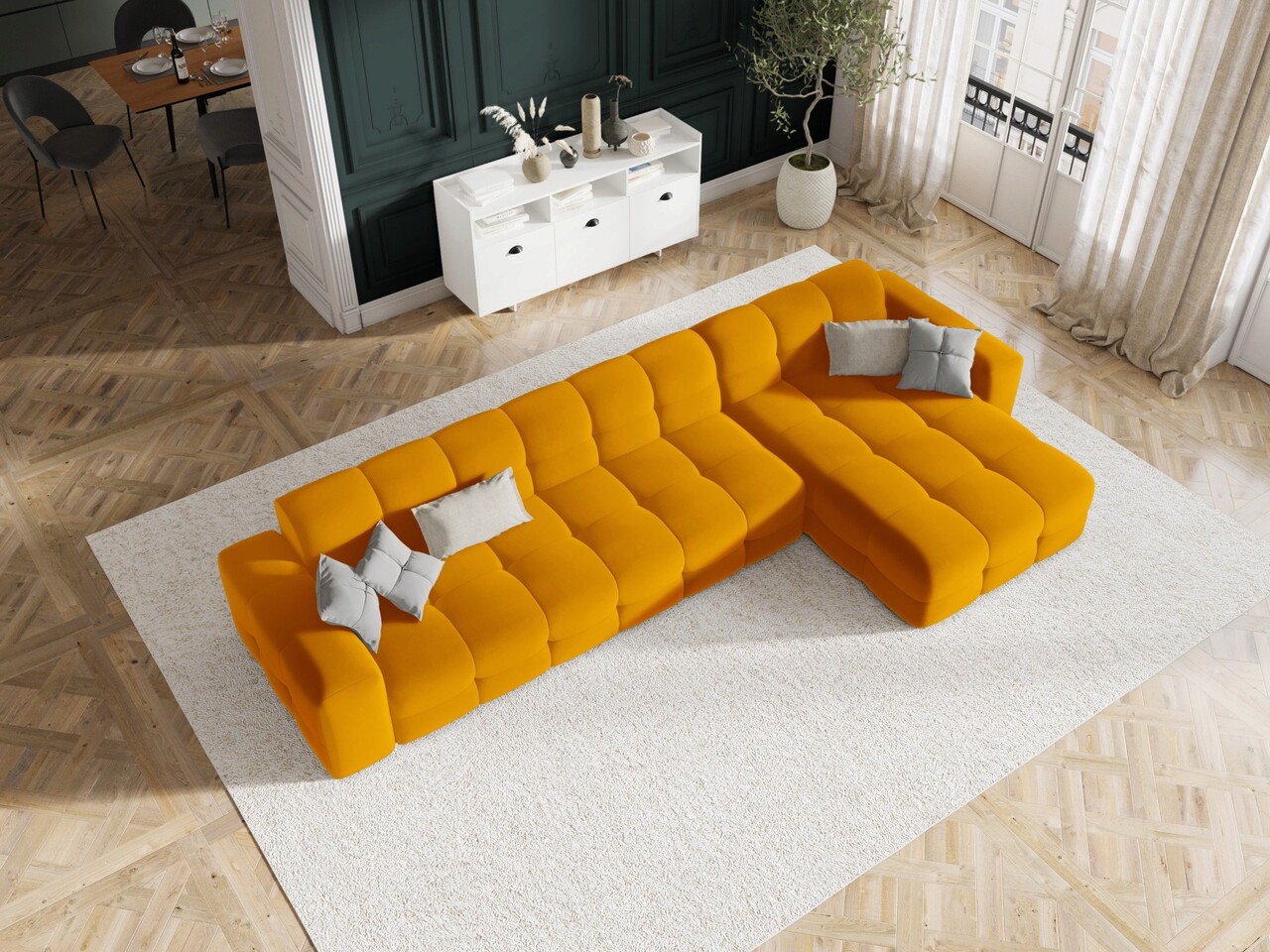 Coltar dreapta 5 locuri, Kendal, Micadoni Home, BL, 357x173x79 cm, catifea, portocaliu
