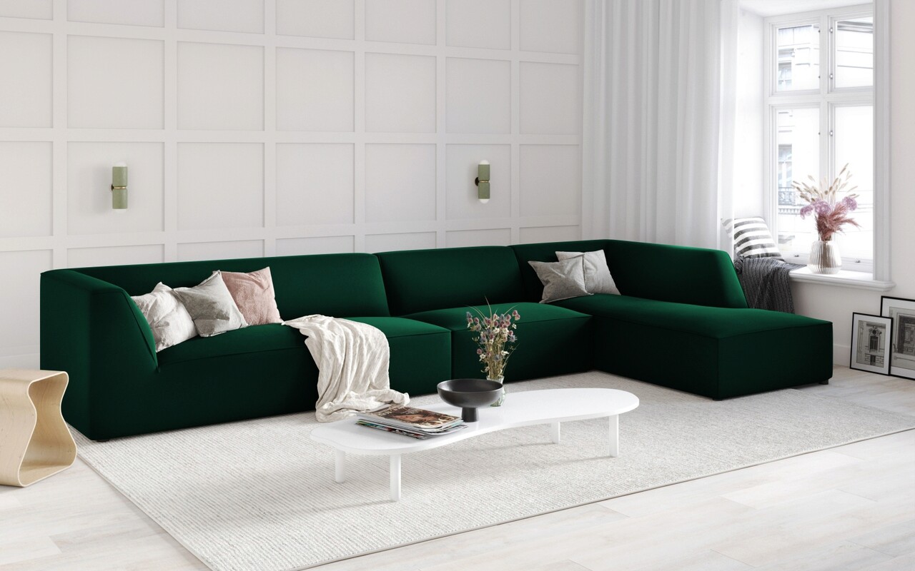 Coltar dreapta 5 locuri, Ruby, Micadoni Home, BL, 366x180x69 cm, catifea, verde bottle