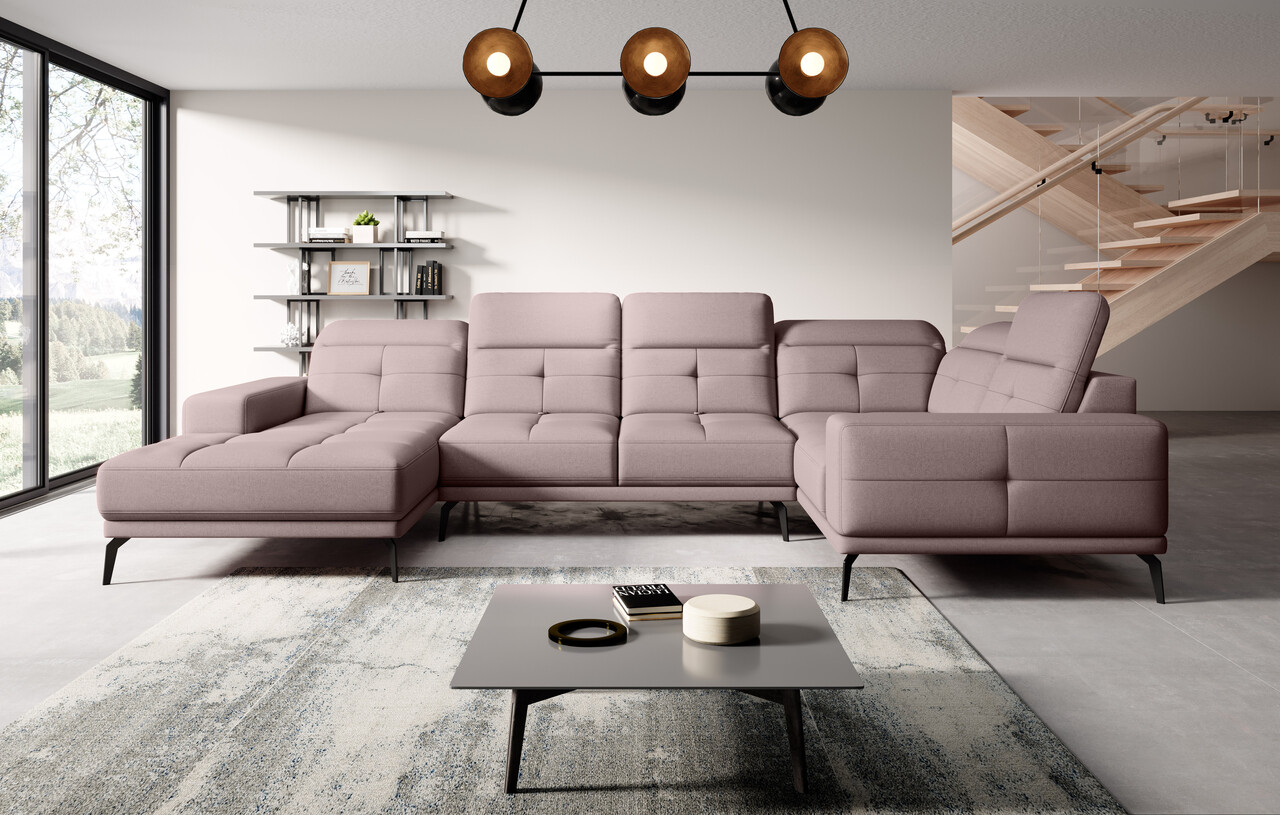 Coltar dreapta 6 locuri ELTAP, RT-101GO, Neviro, 350x201x77 cm, lemn/poliester, roz deschis