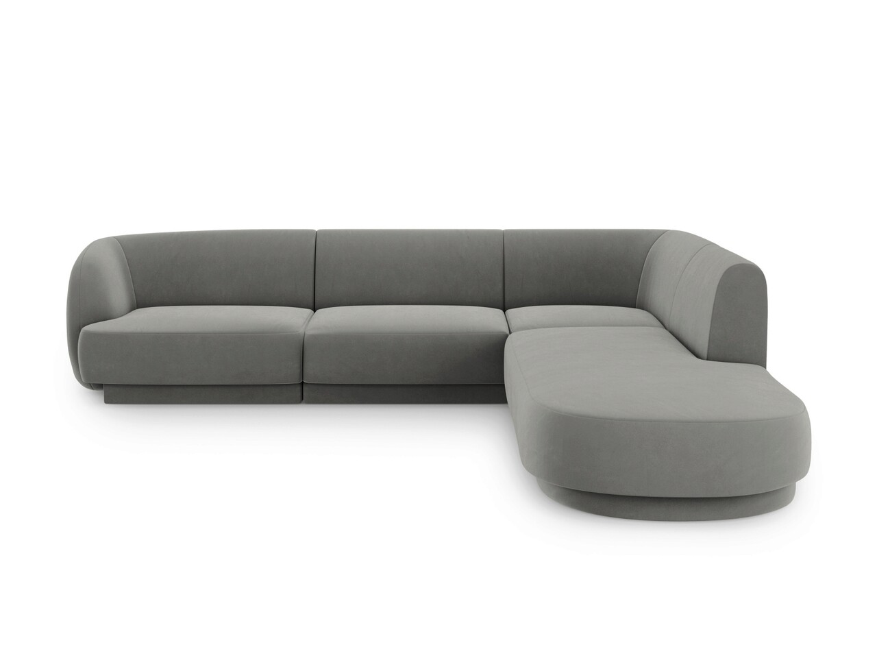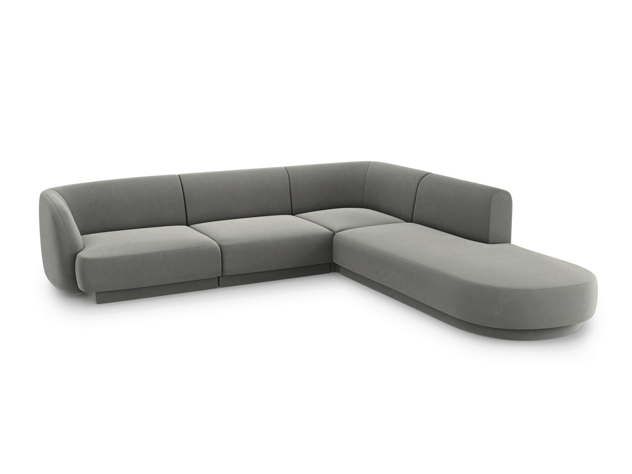 Coltar dreapta 6 locuri, Miley, Micadoni Home, BL, forma rotunjita, 258x248x74 cm, catifea, gri deschis