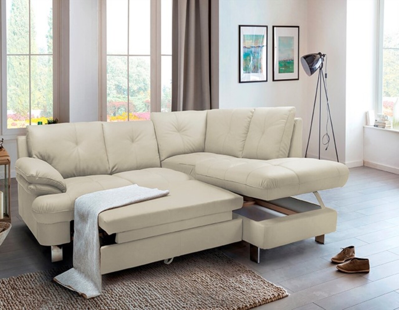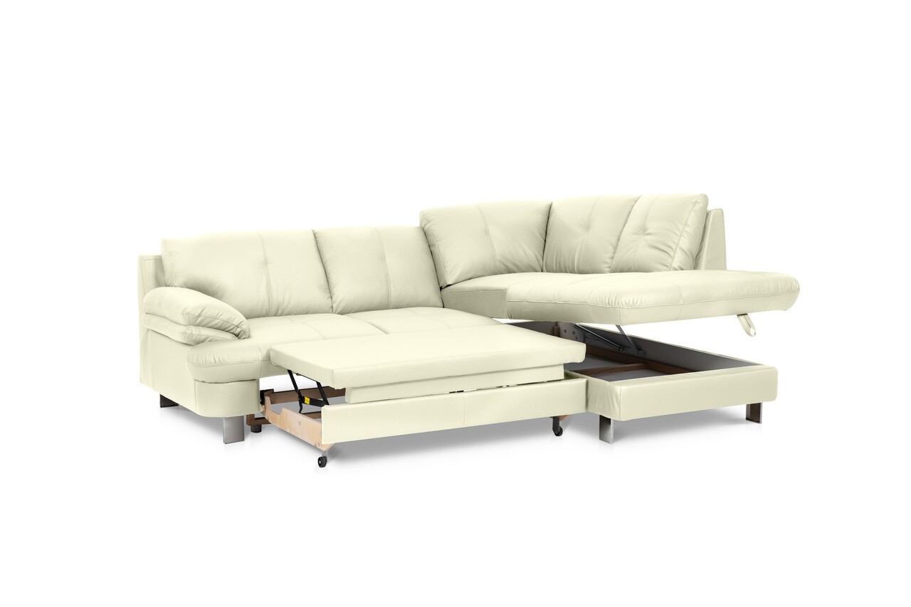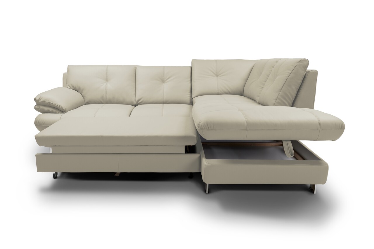 Coltar dreapta extensibil, Ranger, 185x247x82 cm, piele naturala cu piele ecologica, lada de depozitare, Bej
