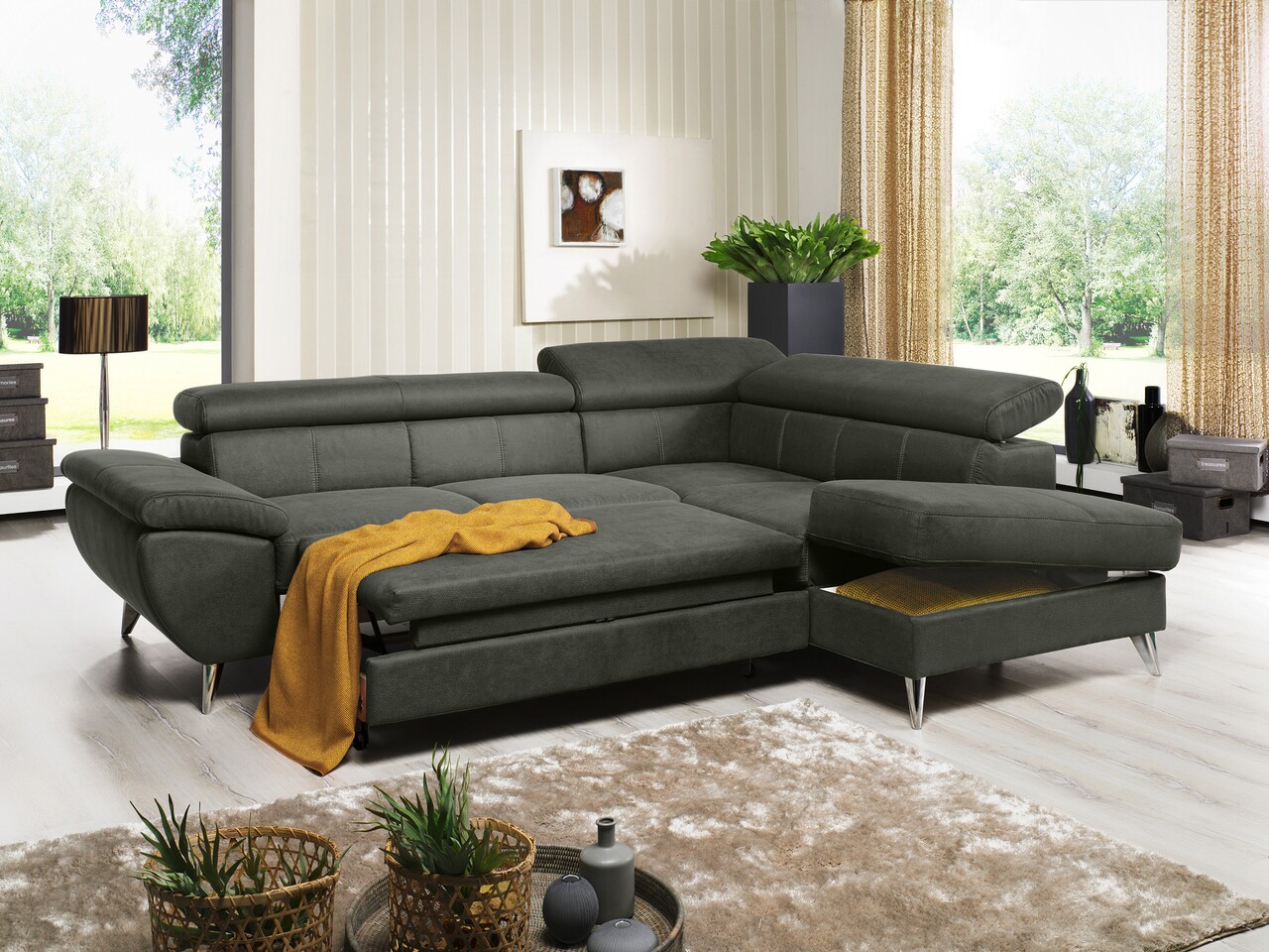 Dimensiunea cat si lada de depozitare a acestui coltar ofera spatiu suficient pentru relaxarea intregii familii, dar si pentru depozitarea accesorilor de dormit.