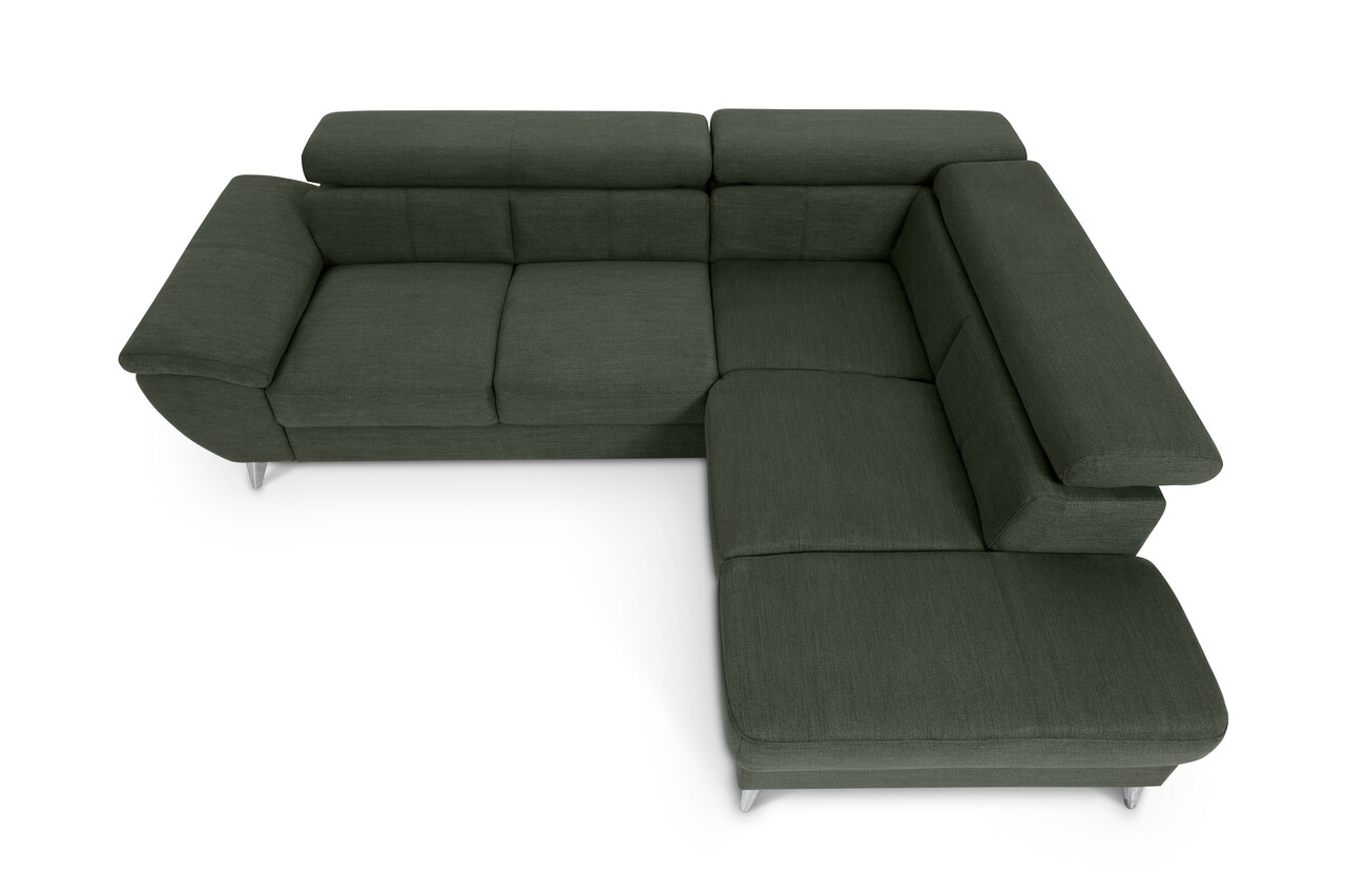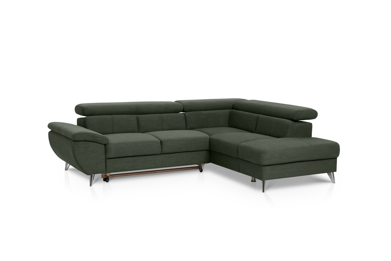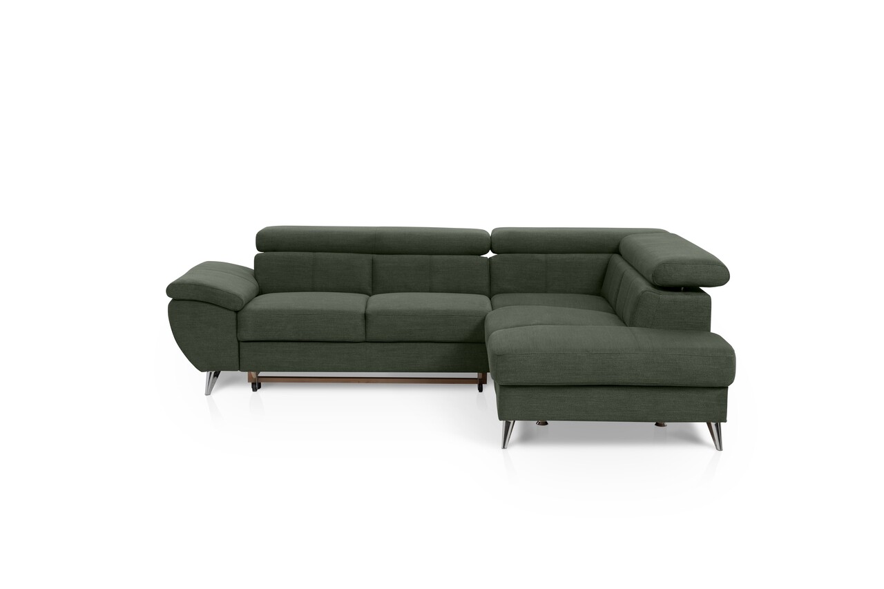 Coltar dreapta extensibil, Tokyo, 207x260x93 cm, lada de depozitare, Verde