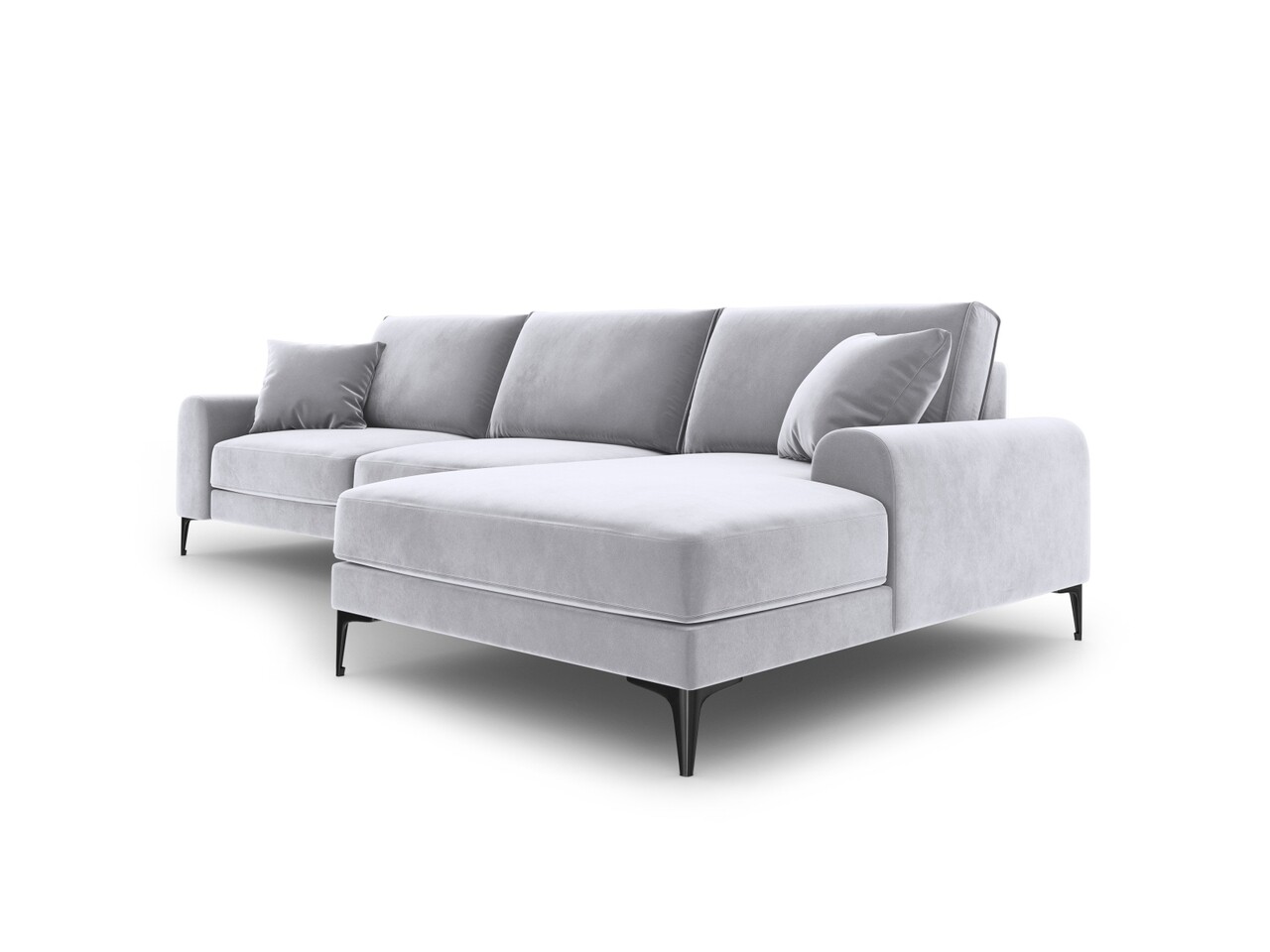 Coltar dreapta, Madara, Mazzini Sofas, 5 locuri, black legs, 254x182x90 cm, catifea, argintiu