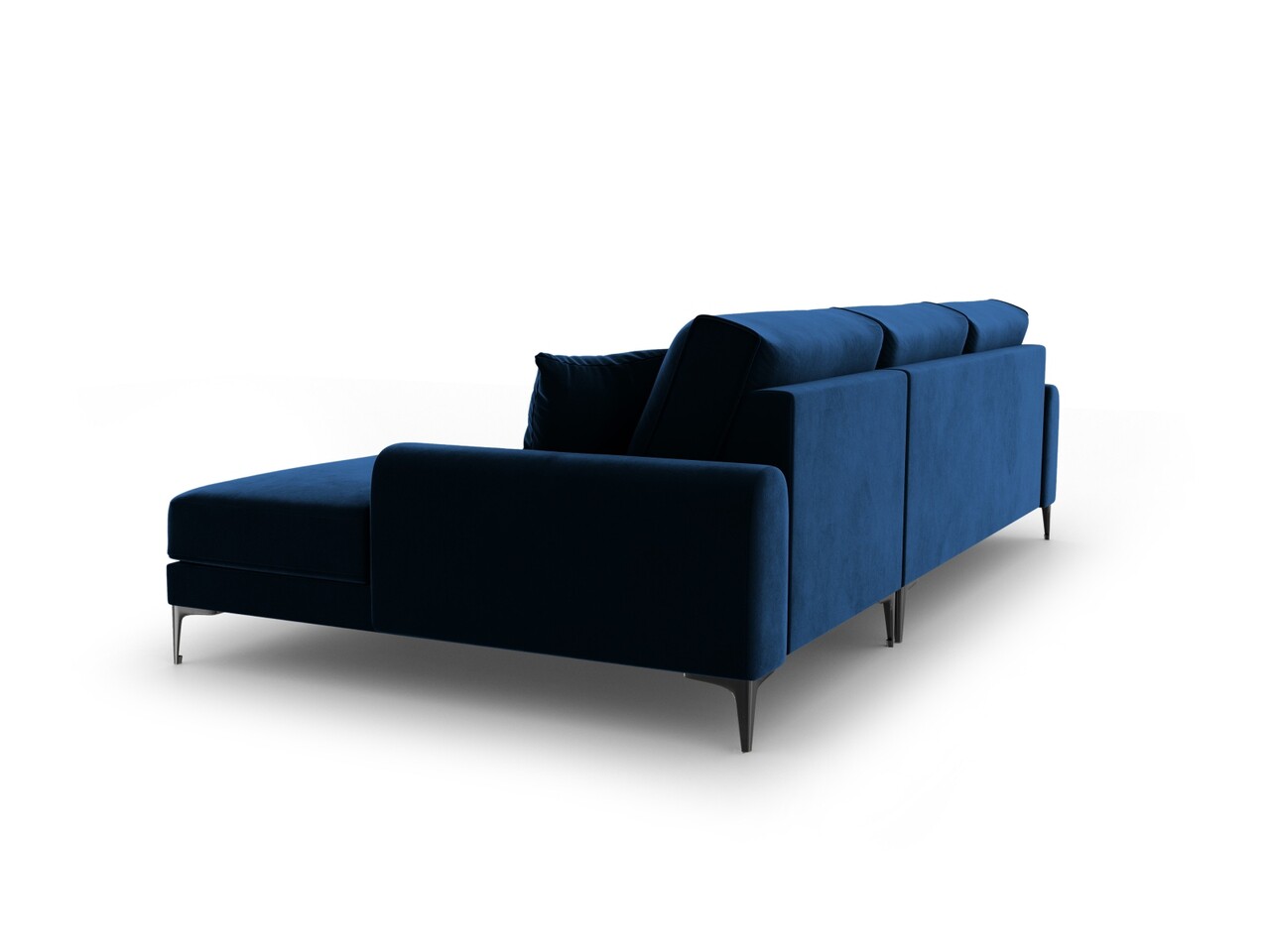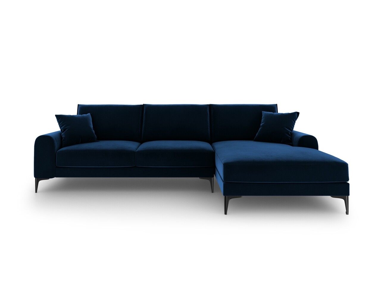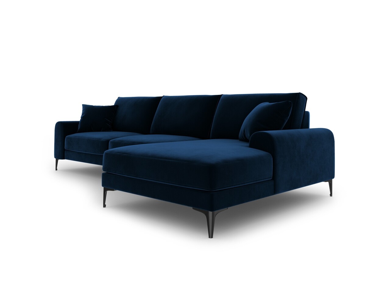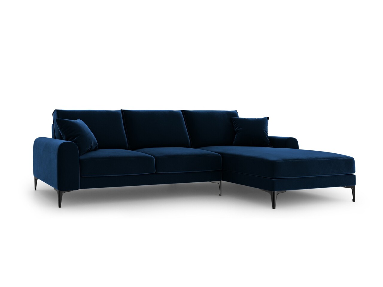Coltar dreapta, Madara, Mazzini Sofas, 5 locuri, black legs, 254x182x90 cm, catifea, albastru regal