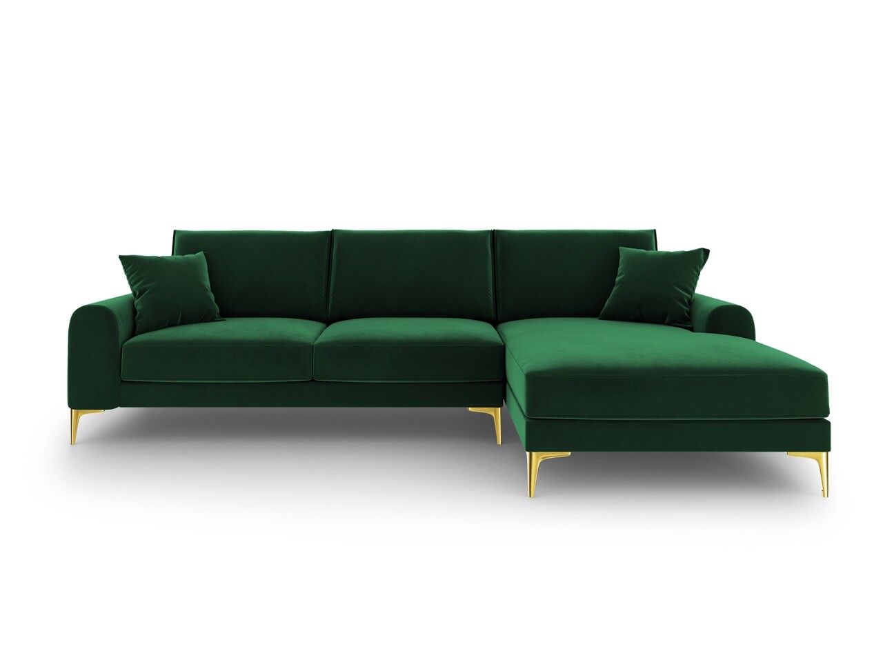 Coltar dreapta, Madara, Mazzini Sofas, 5 locuri, gold legs, 254x182x90 cm, catifea, verde bottle