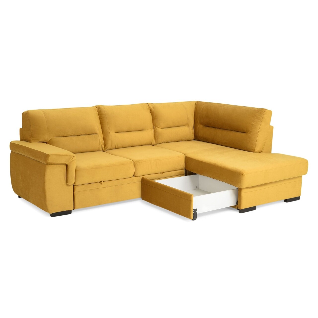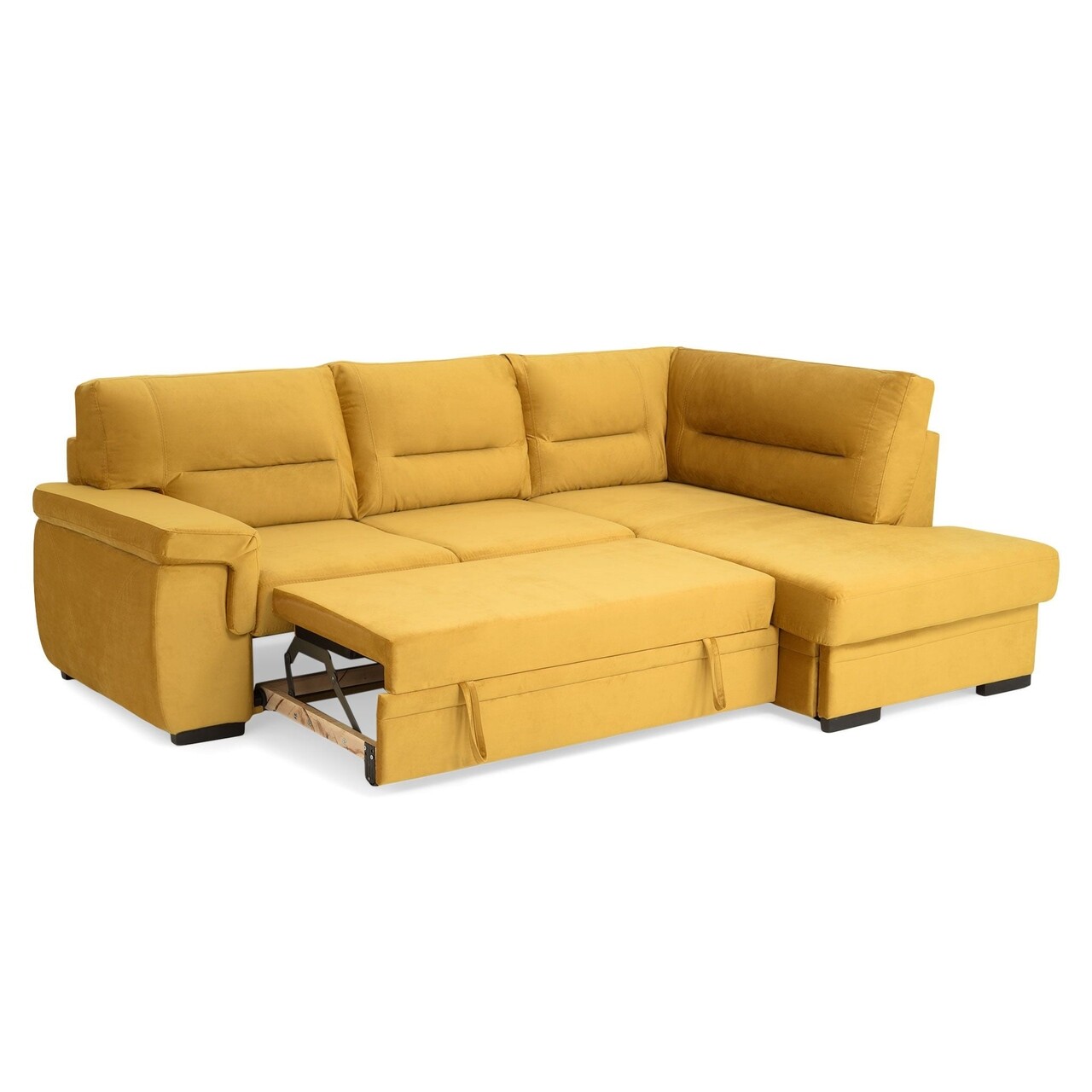 Coltar extensibil cu sezlong dreapta, Arago, L.252 l.178 H.90, stofa, galben