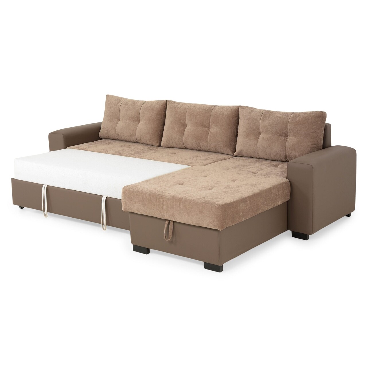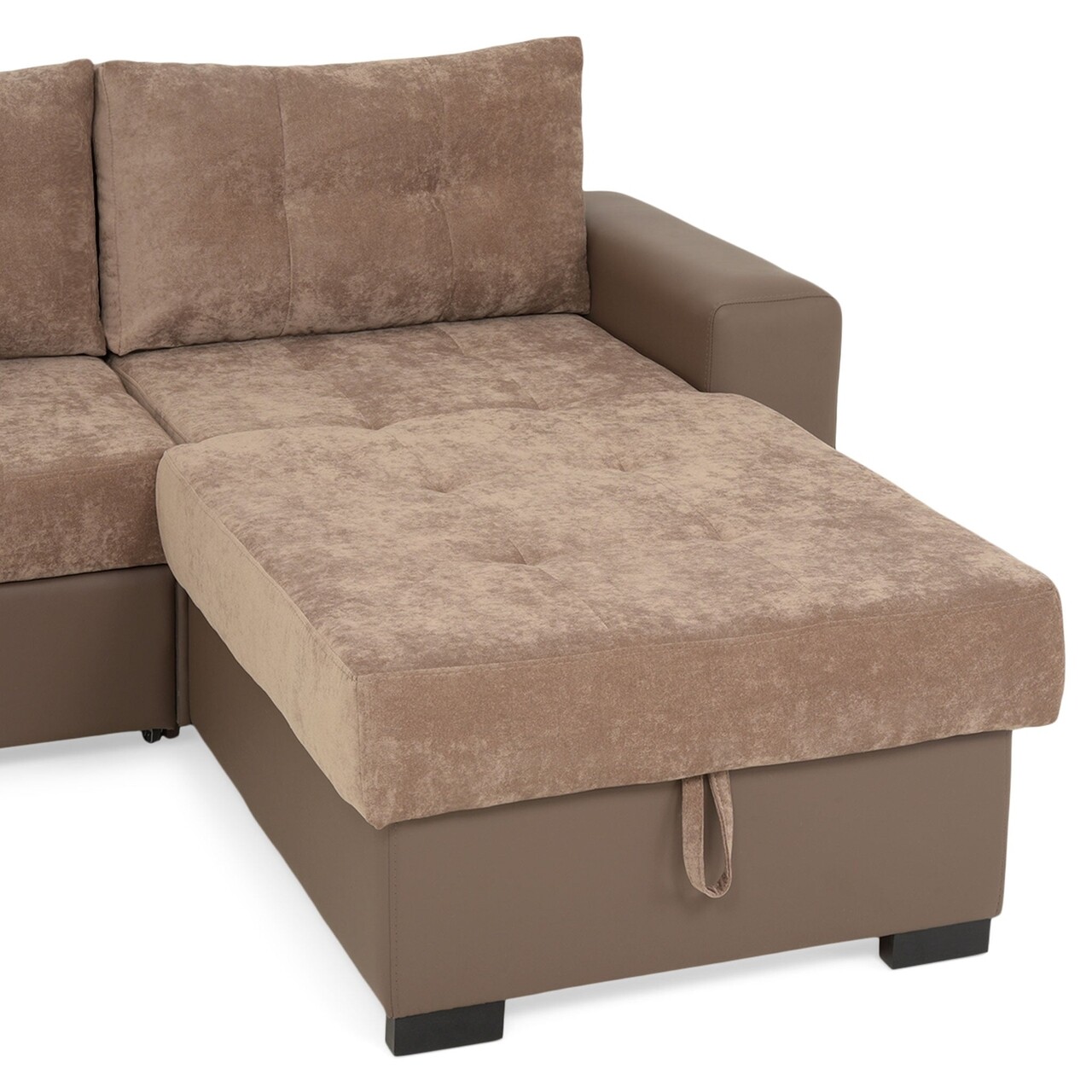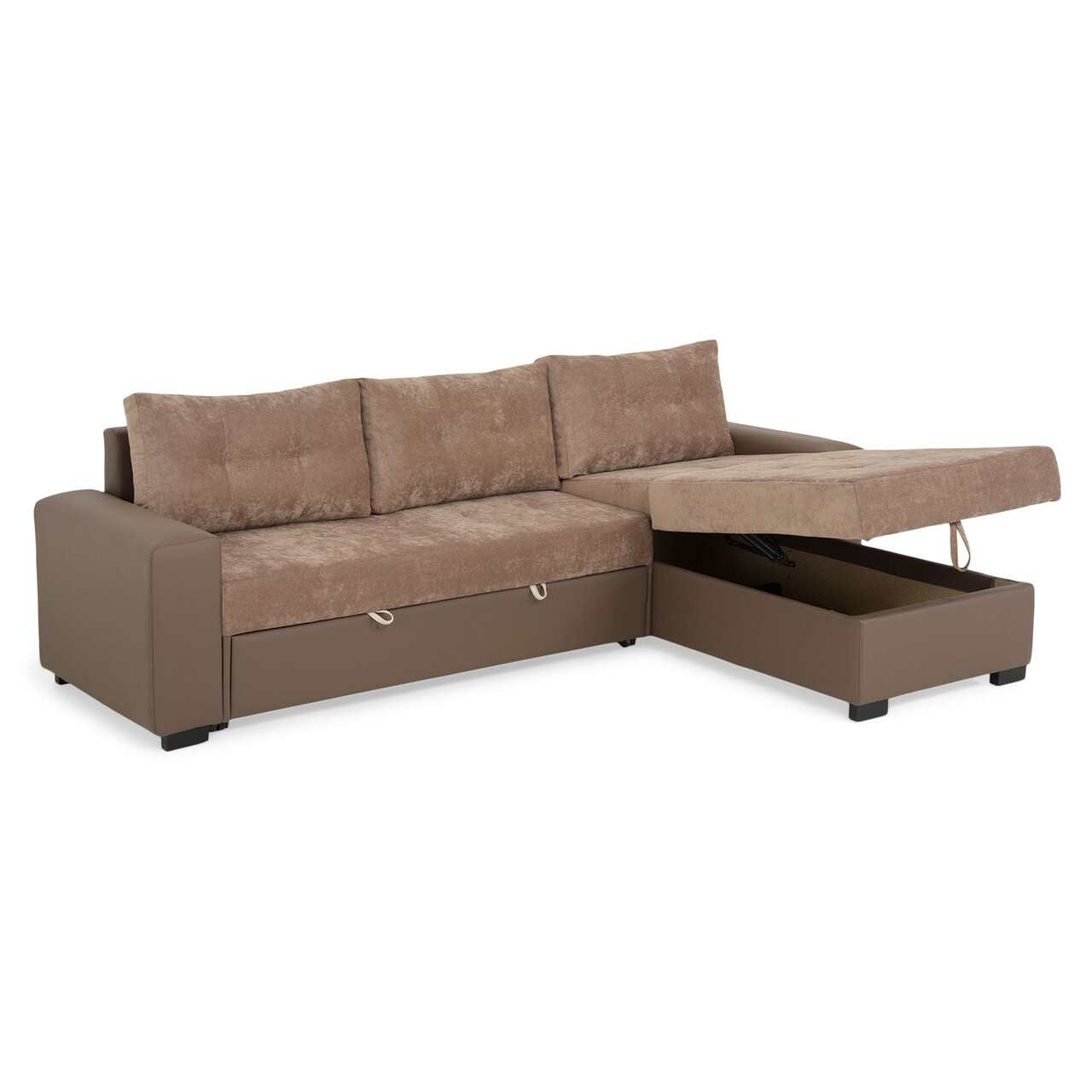 Coltar extensibil cu sezlong interschimbabil, Kelso, L.264 l.170 H.85, stofa, maro