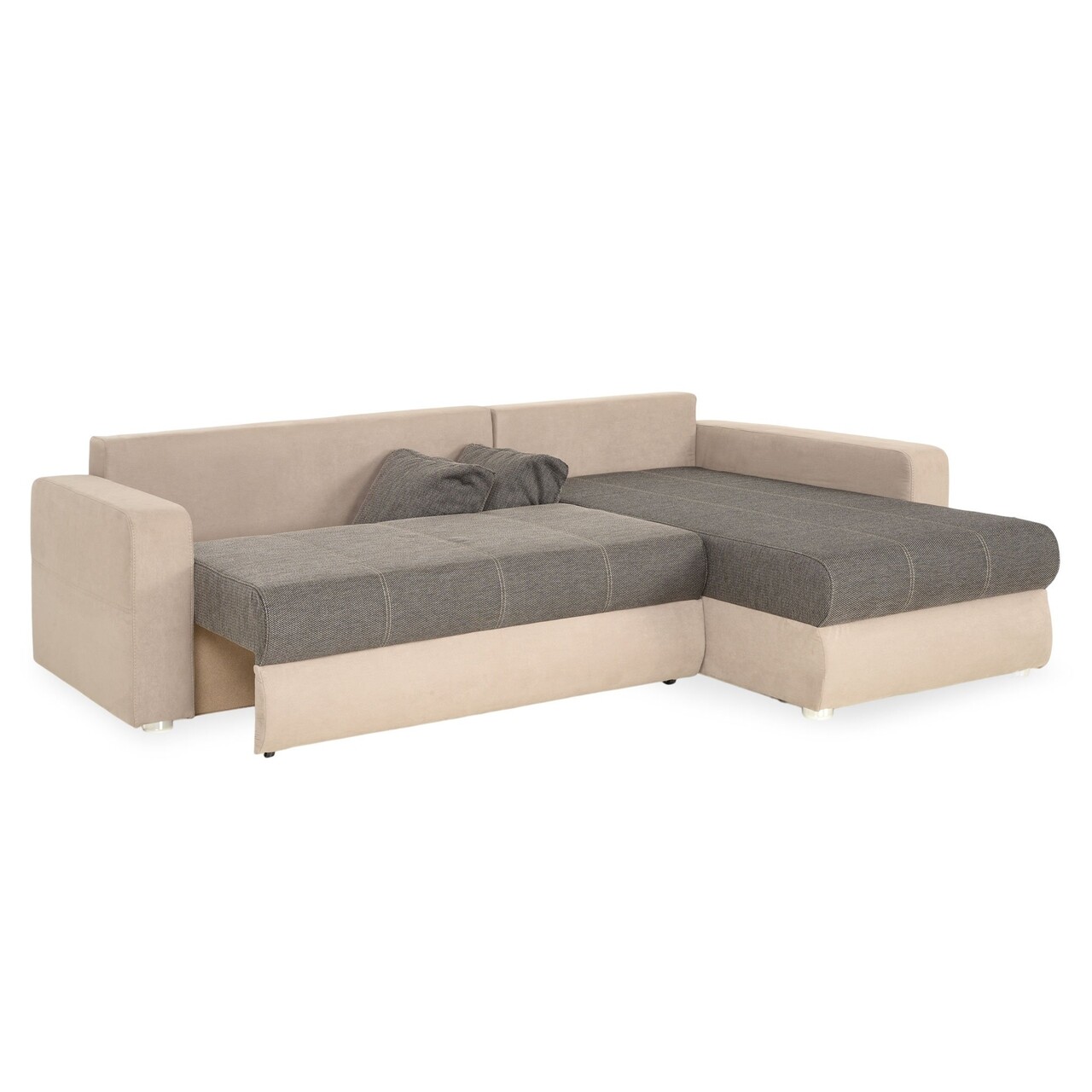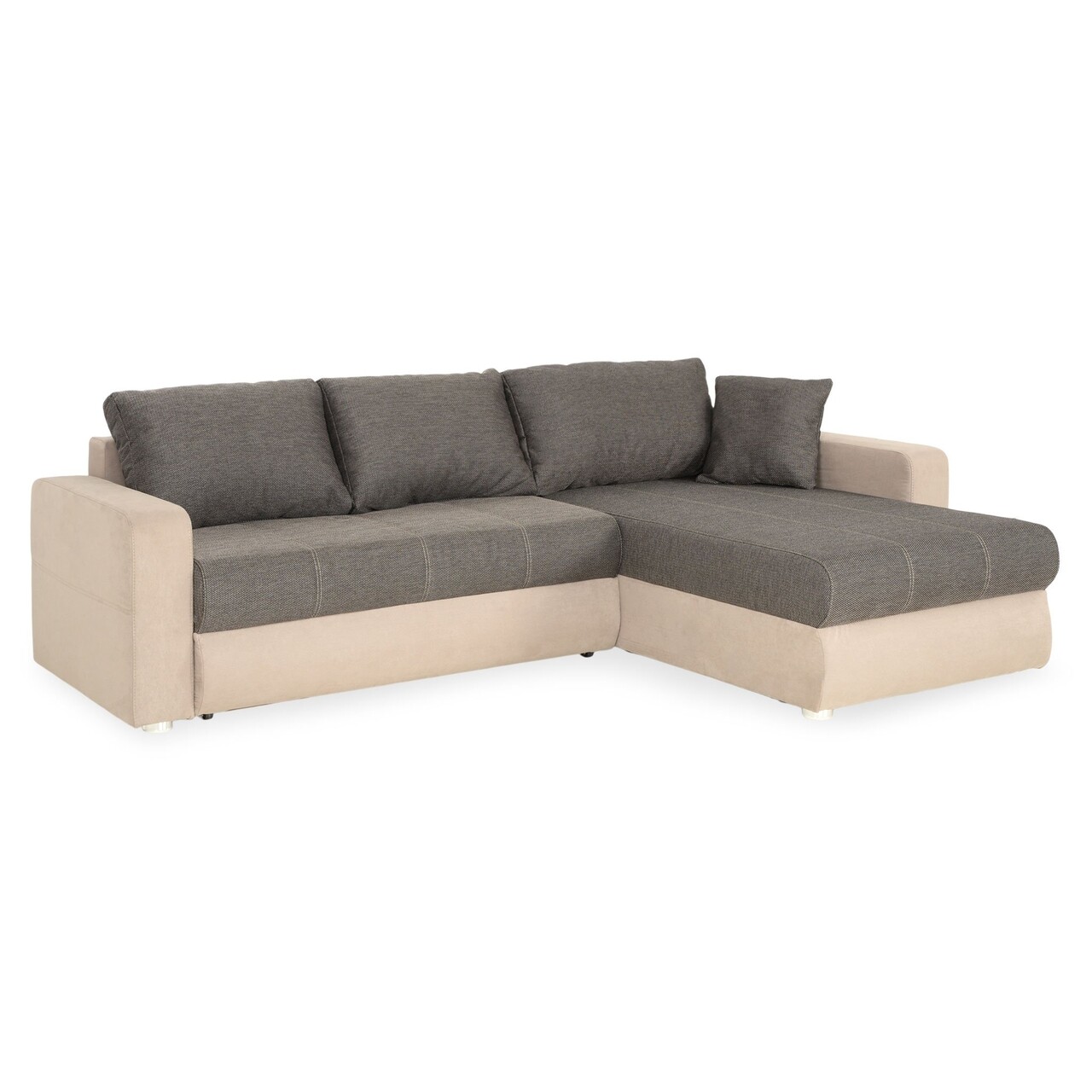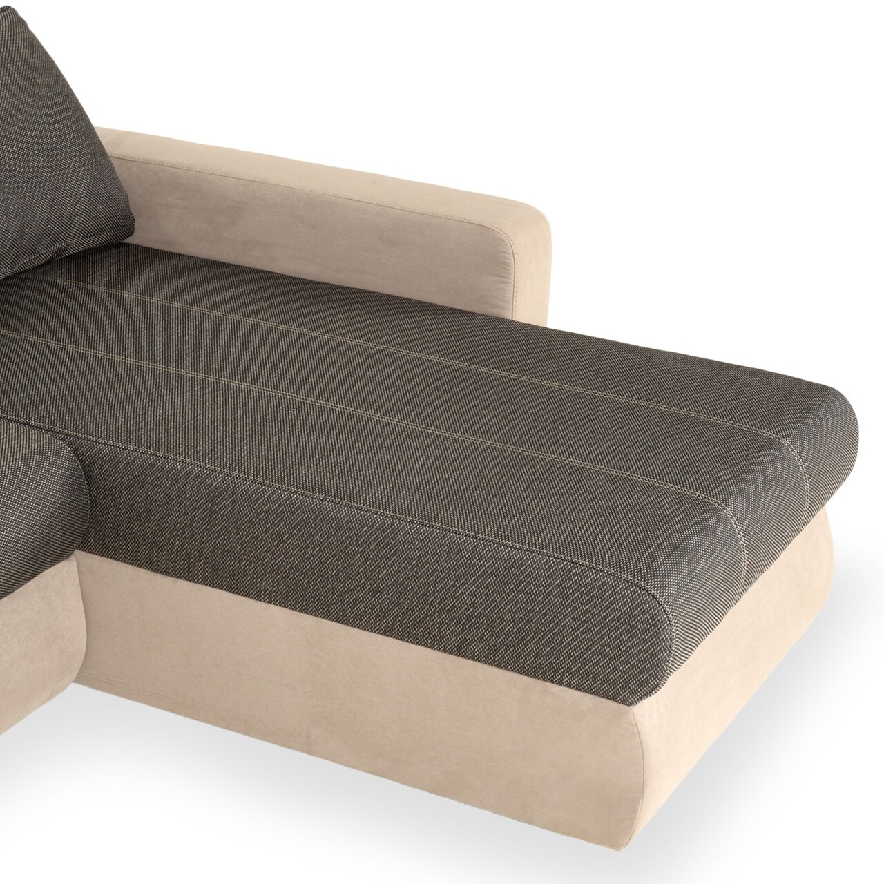 Coltar extensibil cu sezlong universal, Aten, L.245 l.182 H.86, pal/stofa, maro/grej