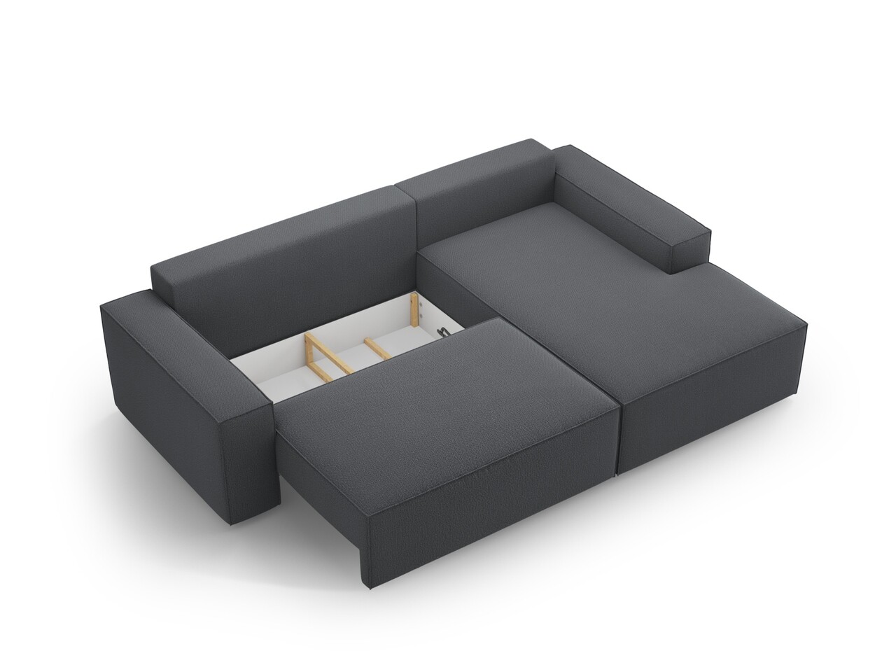 Coltar extensibil dreapta 3 locuri cu lada depozitare, Jodie-78, Micadoni Home, 246x151x86 cm, tesatura structurata, gri inchis