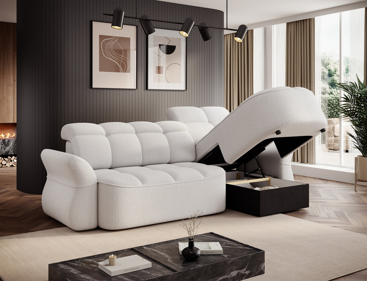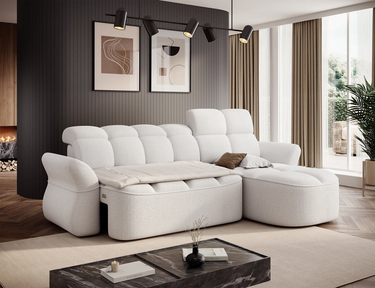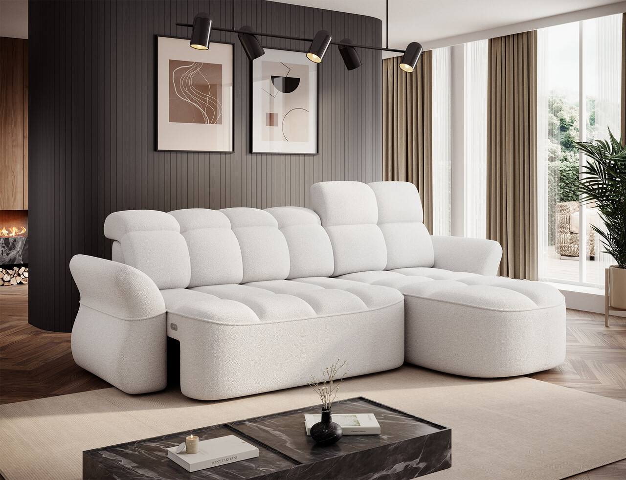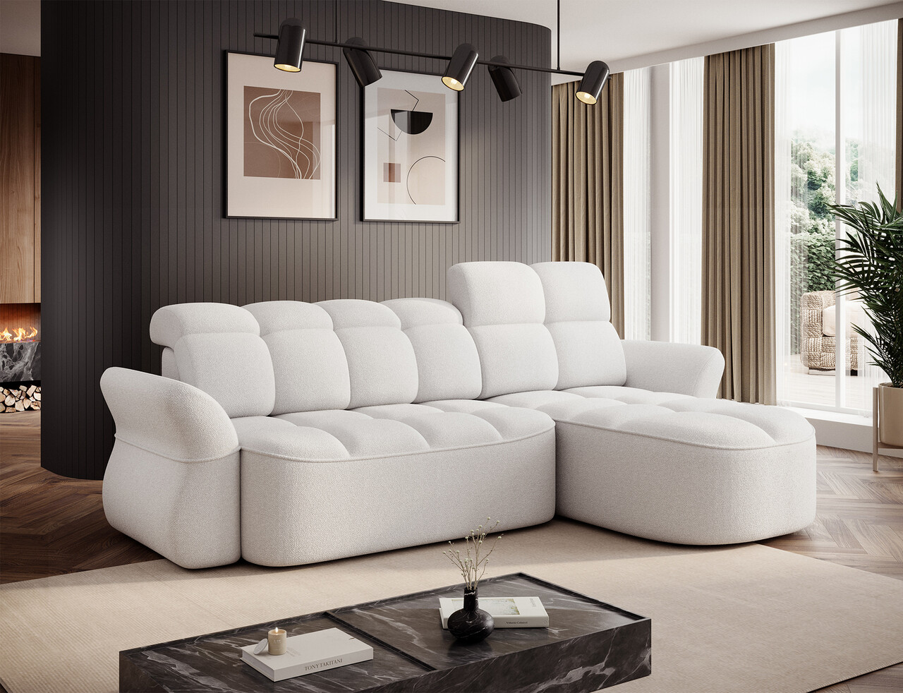 Coltar extensibil dreapta 3 locuri ELTAP, Beneth, 301x185x115 cm, lemn/poliester, alb