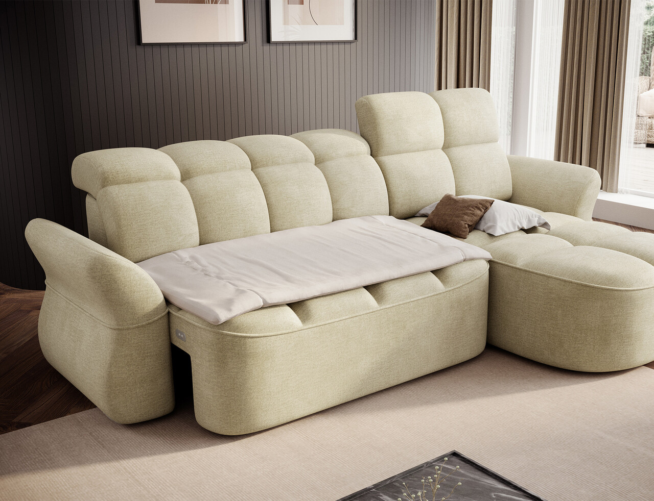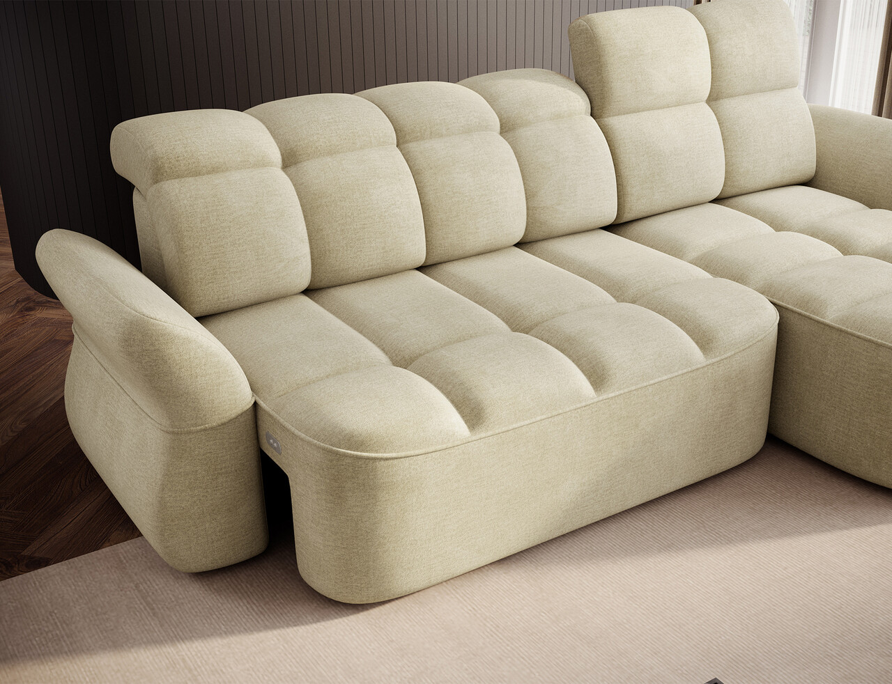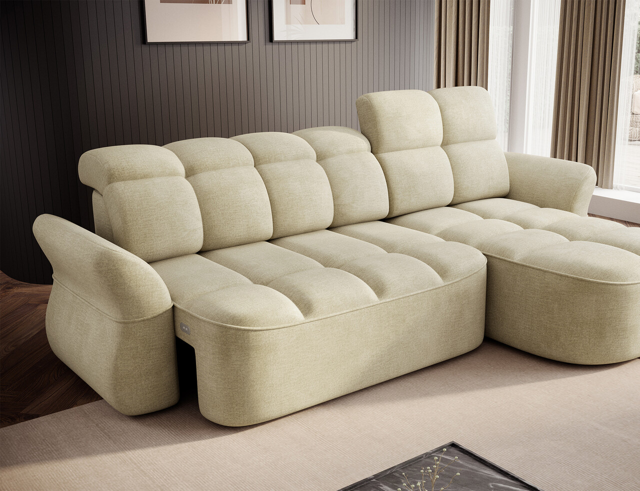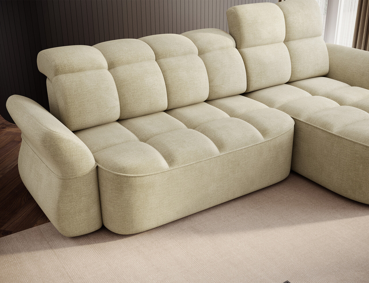 Coltar extensibil dreapta 3 locuri ELTAP, Beneth, 301x185x115 cm, lemn/poliester, bej deschis
