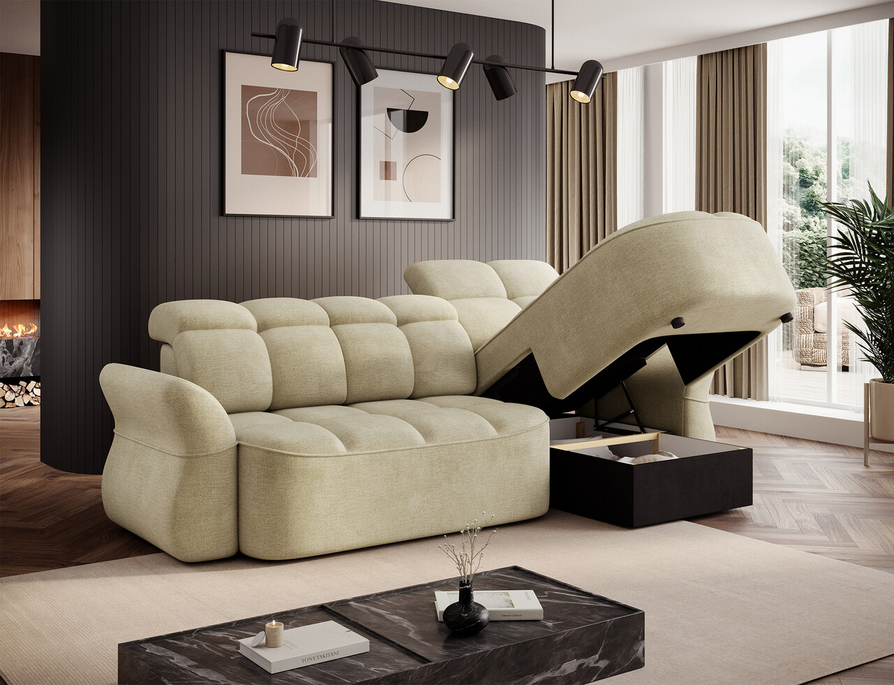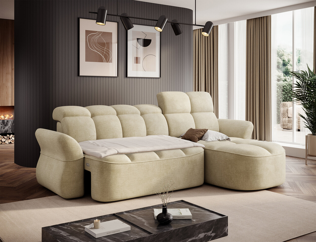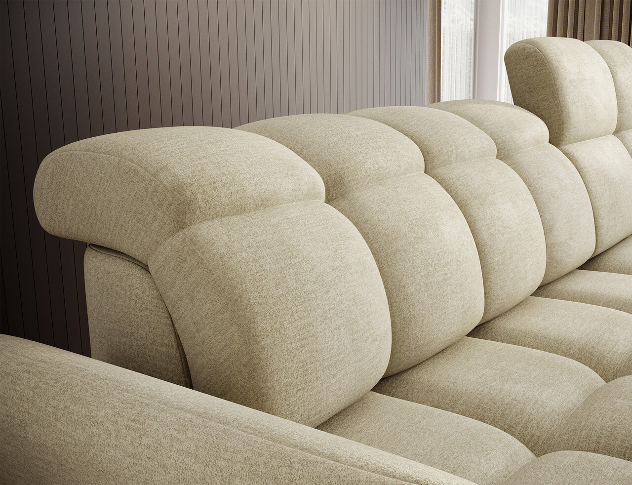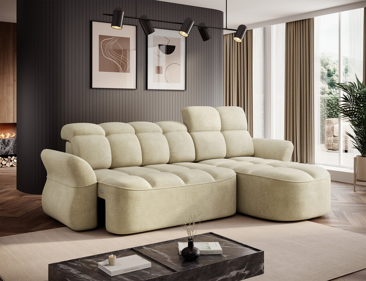 Coltar extensibil dreapta 3 locuri ELTAP, Beneth, 301x185x115 cm, lemn/poliester, bej deschis