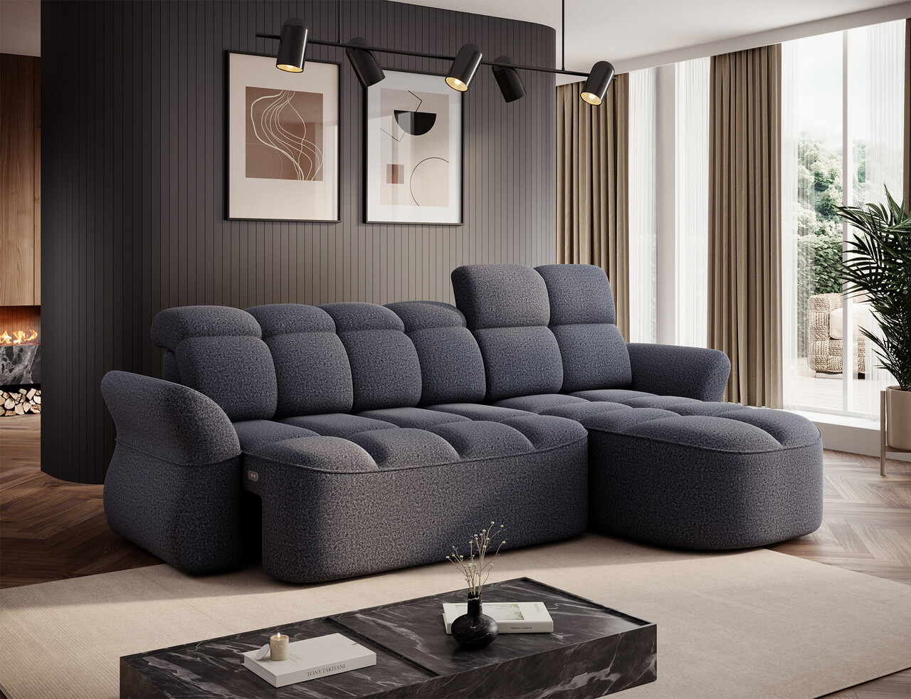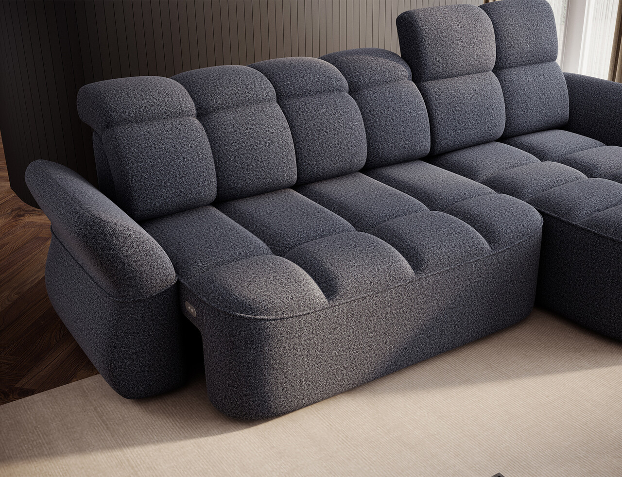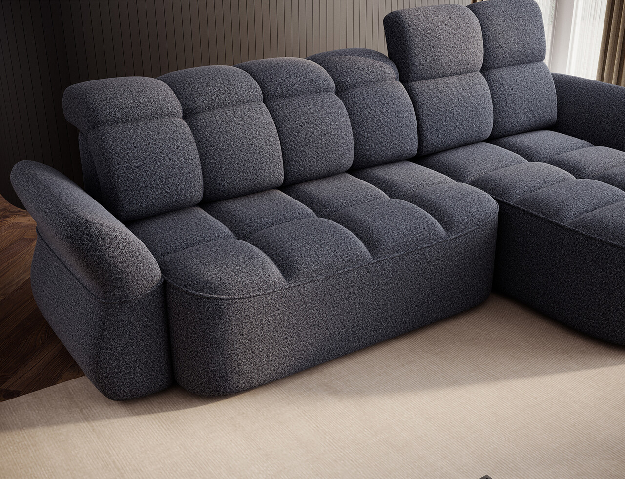 Coltar extensibil dreapta 3 locuri ELTAP, Beneth, 301x185x115 cm, lemn/poliester, albastru