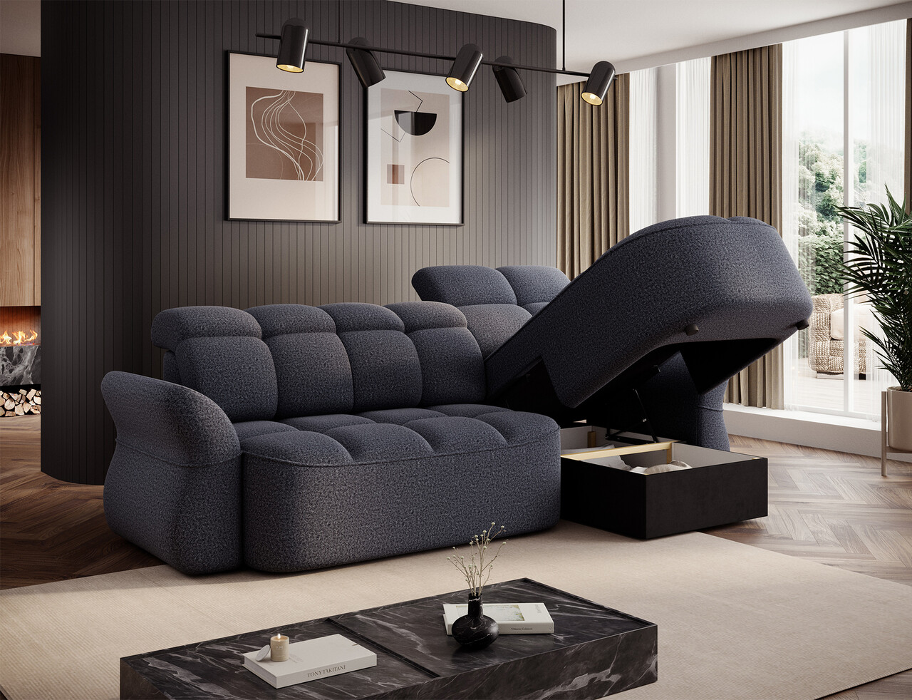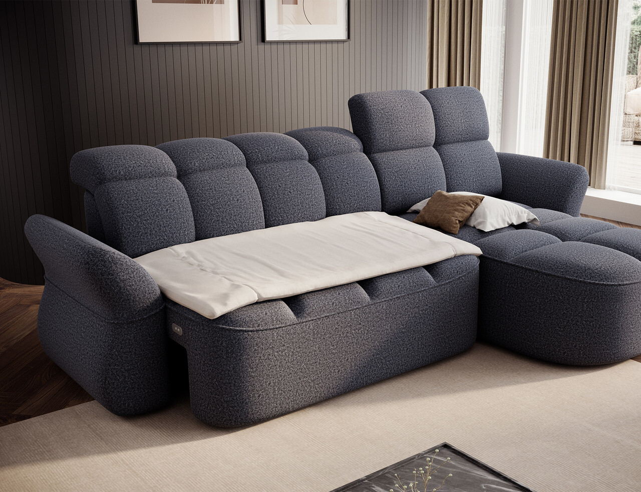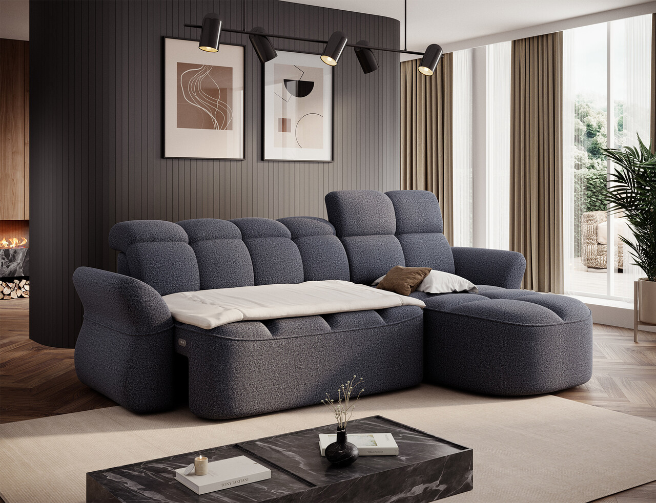 Coltar extensibil dreapta 3 locuri ELTAP, Beneth, 301x185x115 cm, lemn/poliester, albastru