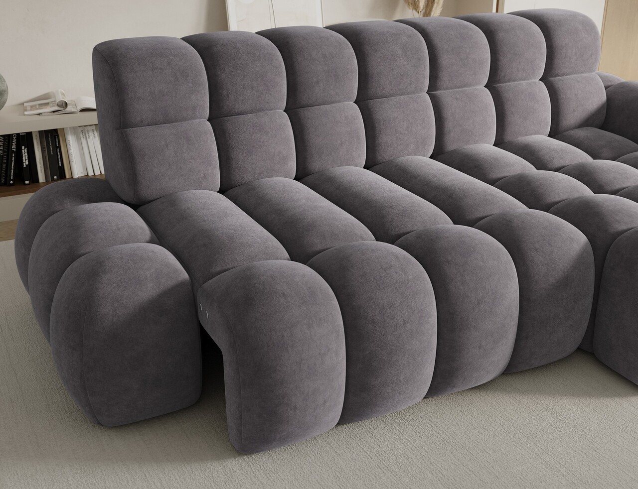 Coltarul Ceedro este un coltar de relaxare modern care imbina aspectul elegant cu functionalitatea ridicata, ideal pentru interioarele contemporane. Cu dimensiunile sale ofera spatiu generos si confort iar spatarul tapitat permite amplasarea libera in living. Confortul la sedere este asigurat de materiale de inalta calitate: spuma HR si spuma T2315 in sezut, finisate cu un strat T2130, garantand durabilitate, elasticitate si o experienta placuta. Spatarul este umplut cu spuma T2540 si T2315, oferind sustinere adecvata pentru spate. Coltarul Ceedro este echipat cu extindere electrica a sezutului, permitand reglarea adancimii pentru un confort personalizat. Functia de dormit il transforma intr-un pat suplimentar ideal pentru odihna de noapte. Glisierele din plastic negru confera usurinta si un caracter modern, facilitand totodata mutarea piesei de mobilier pe podea. Coltarul Ceedro este alegerea perfecta pentru cei care cauta un coltar modern, ce imbina designul, confortul si solutiile practice pentru utilizarea zilnica.