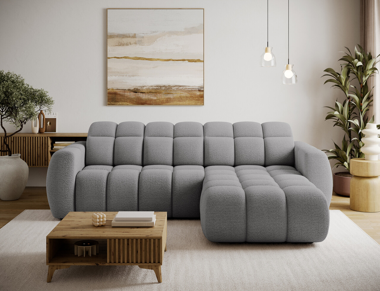 Coltar extensibil dreapta 3 locuri ELTAP, Fanito, 288x200x105 cm, lemn/poliester, gri deschis