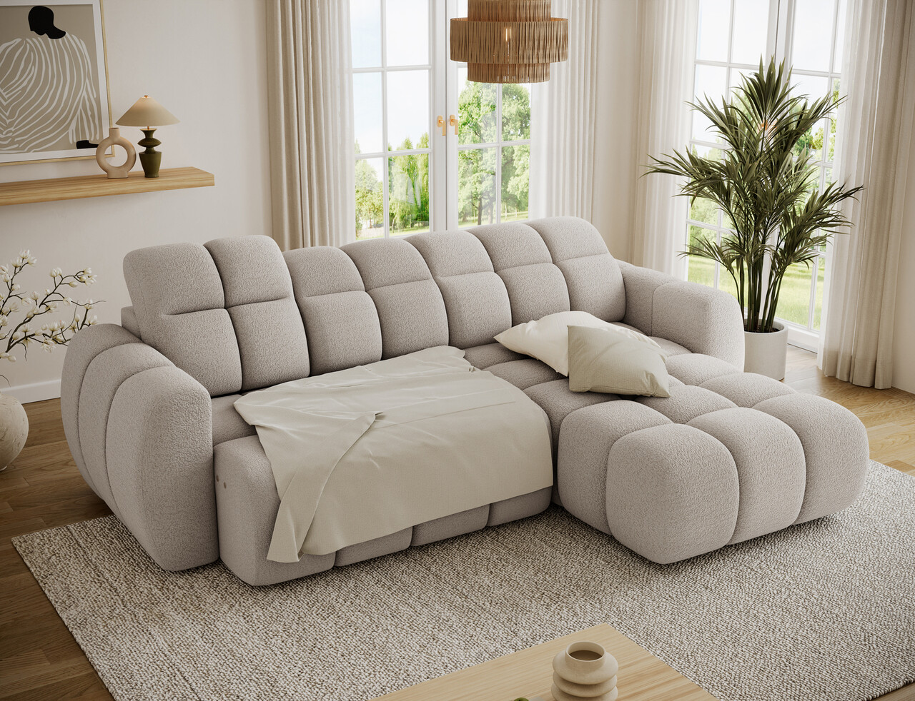 Coltar extensibil dreapta 3 locuri ELTAP, Fanito, 288x200x105 cm, lemn/poliester, bej