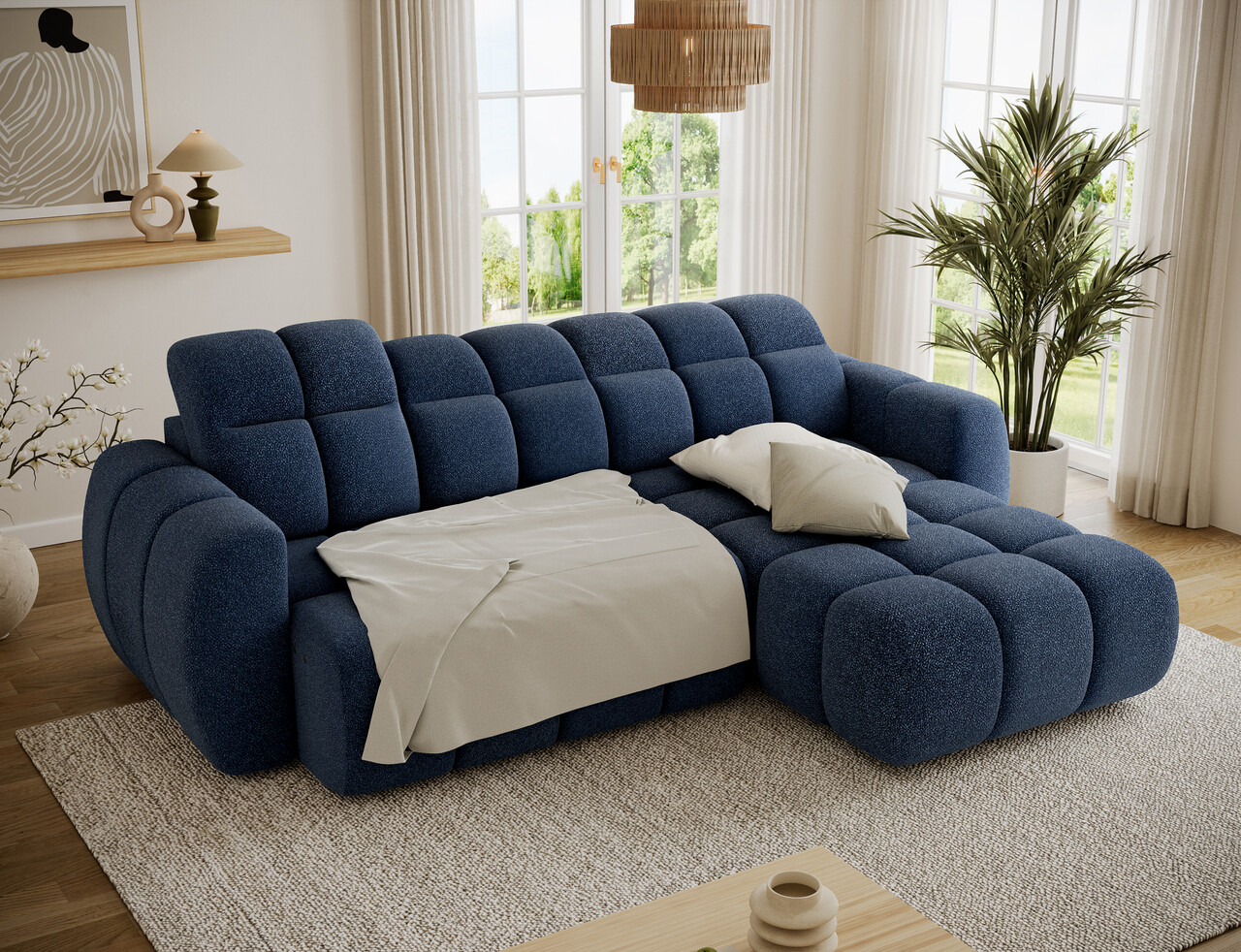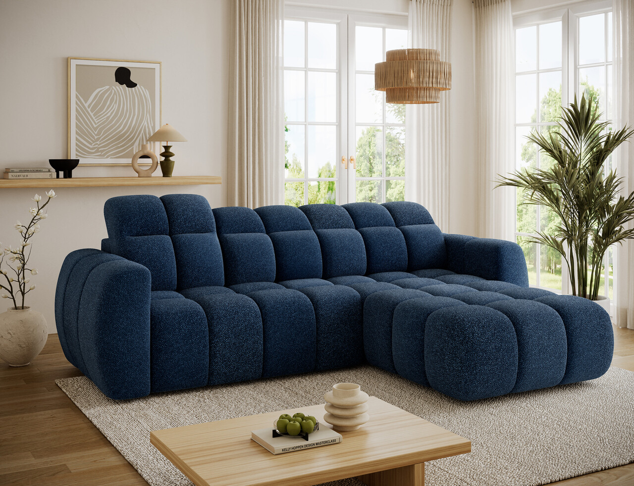 Coltar extensibil dreapta 3 locuri ELTAP, Fanito, 288x200x105 cm, lemn/poliester, albastru inchis