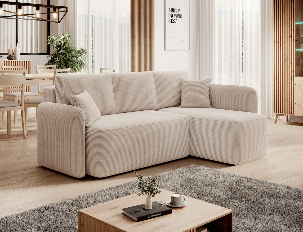 Coltar extensibil dreapta 3 locuri ELTAP, Hadson, 206x150x89 cm, lemn/poliester, bej deschis