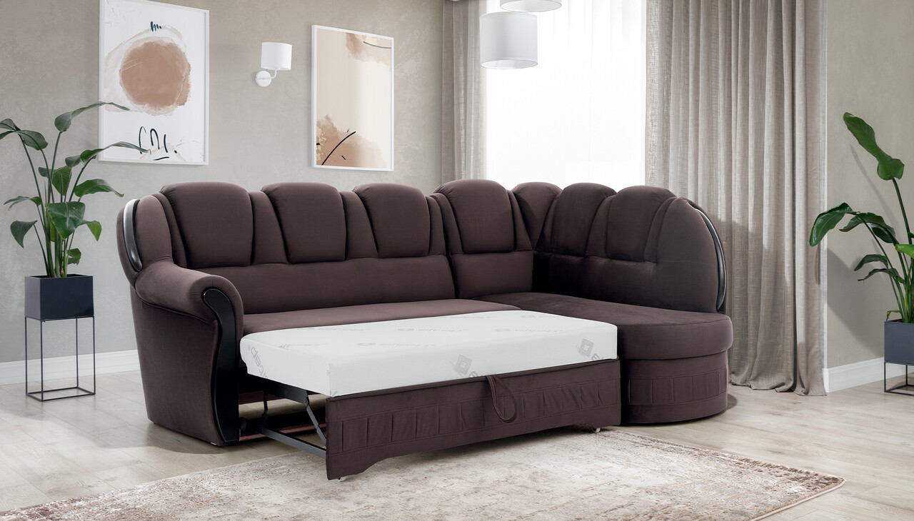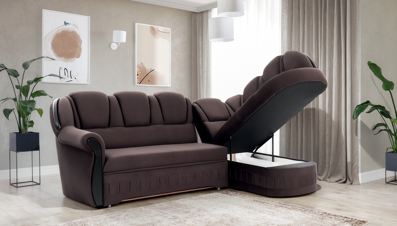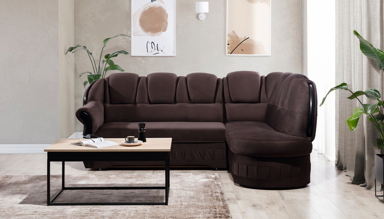 Coltar extensibil dreapta 3 locuri ELTAP, L-004, Lord, 243x180x112 cm, lemn/poliester, maro inchis/negru